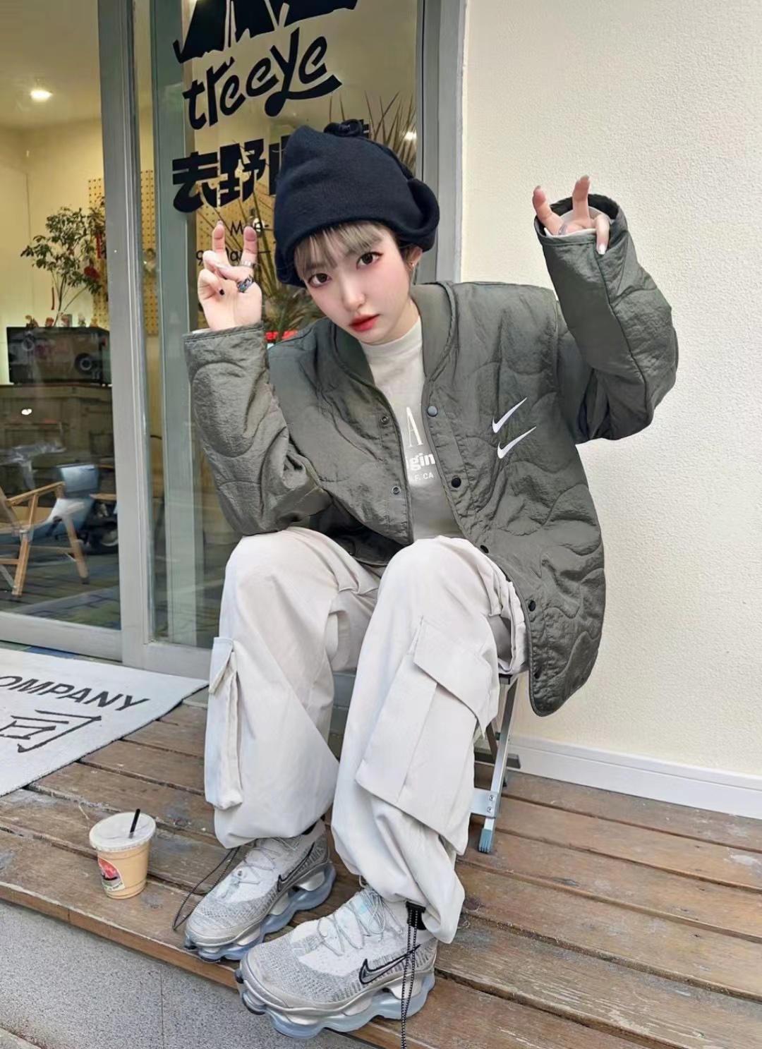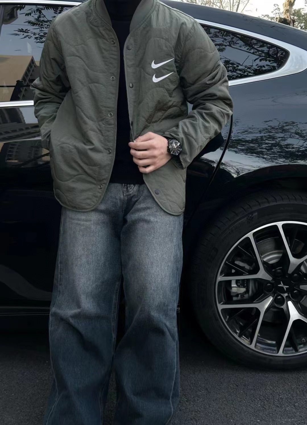 Nike Sportswear Swoosh 双勾刺绣宽松绗缝棉服 上身效果#