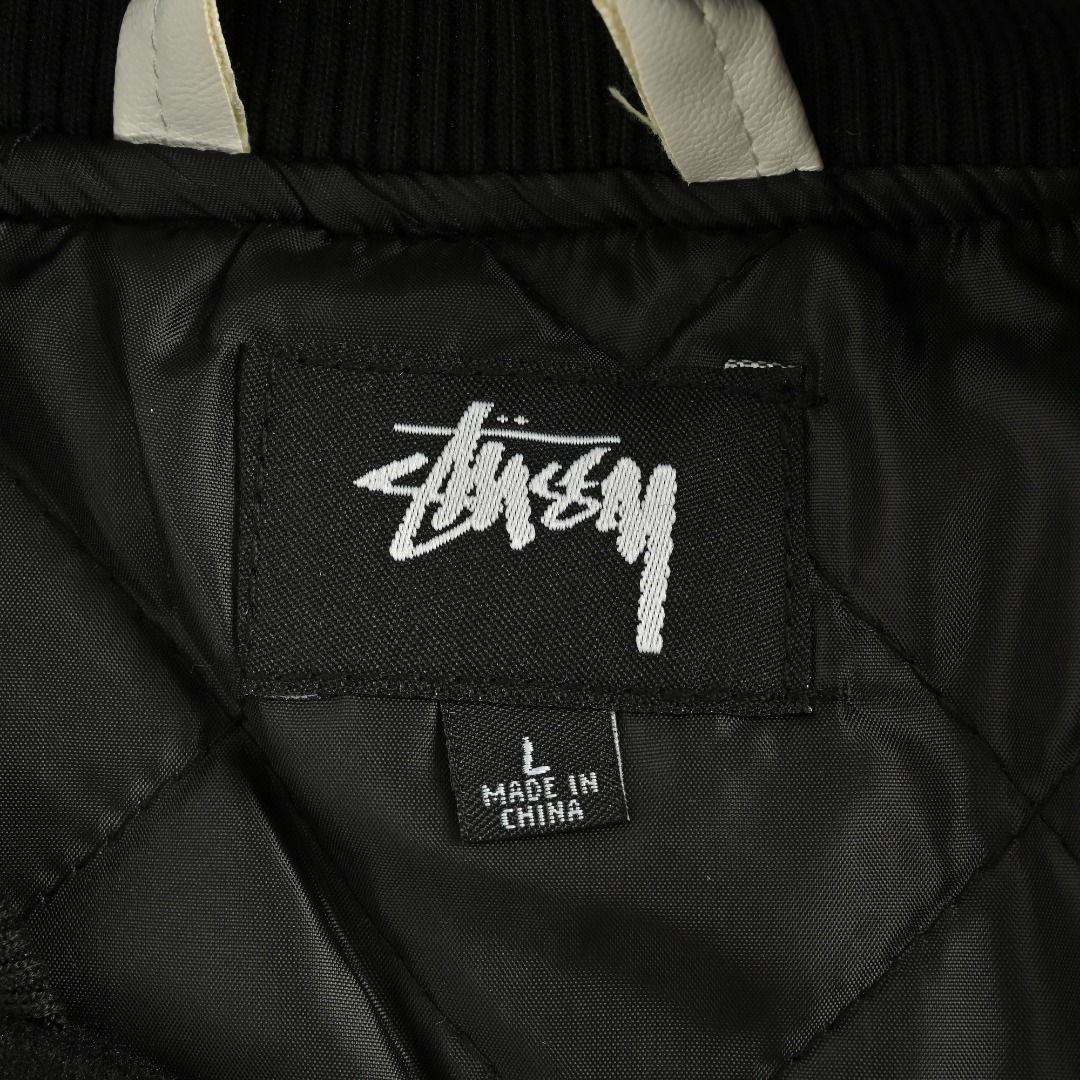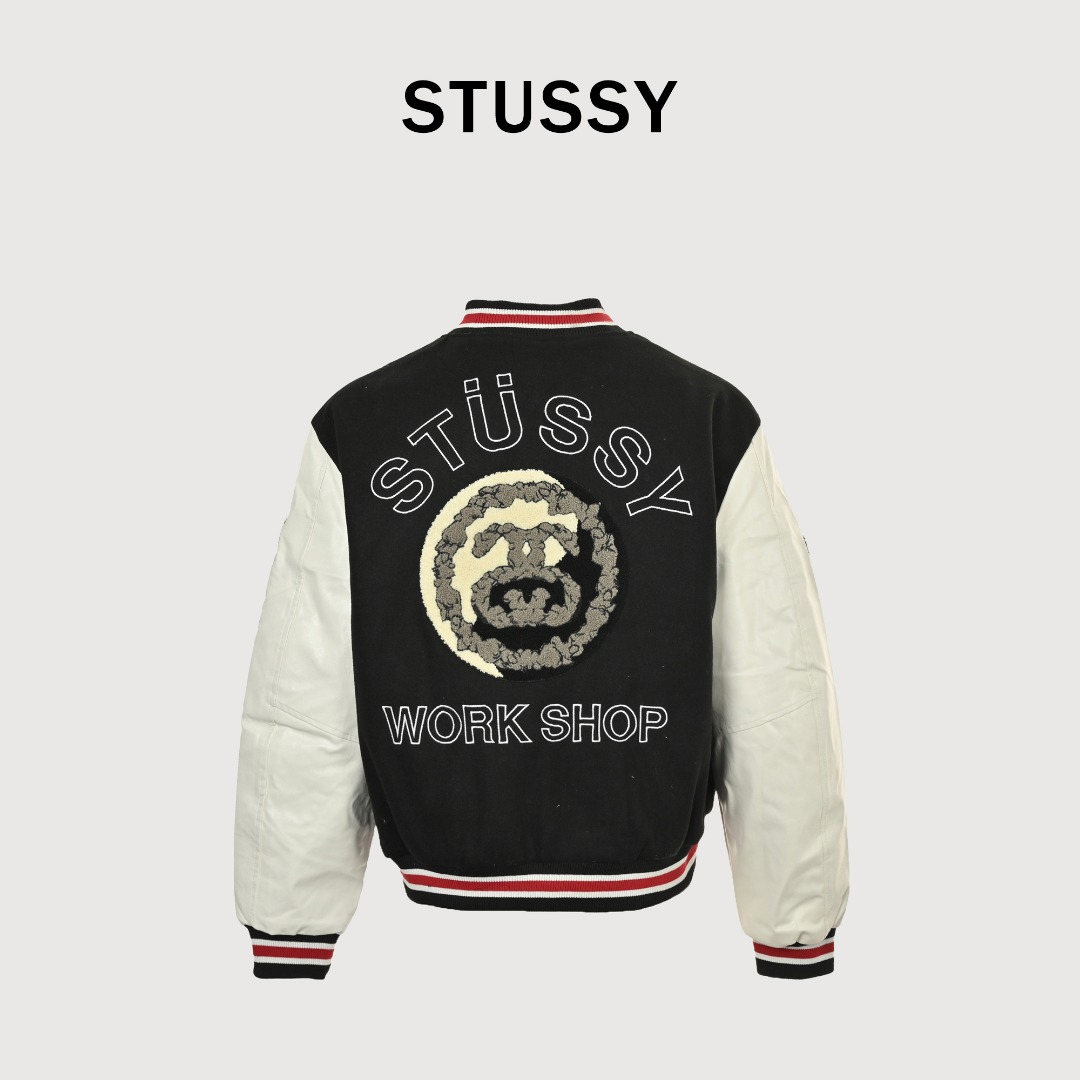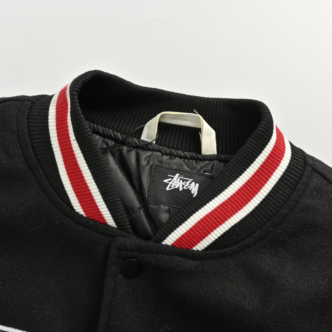 本地自取💰260 斯图西Stussy 三方联名款拼接刺绣棒球服加棉夹克外套 Stussy X OUR L EGACY x Denim 三方联名TearsTtl Varsity Jacket 棒球服 -设计上整体延用了大片刺绣和拼皮的设计,背后标志性的大logo,将25周年archive棒球服的设计重新呈现在大众面前,左右胳膊处的新刺绣设计和前沿的小刺绣可谓是满满诚意。 -面料采用720克毛呢混纺 手感是非常不错的 区别市场通货 双袖采用仿真皮 虽然没有用按照原版使用真牛皮但是这款仿真皮手感以及舒适度是非常不错的 光泽度也很好 前后幅以及袖子上的毛巾绣全部由特种机器完成 成本是非常高的 原版开模ykk磨砂暗扣 螺纹定织定染 整件衣服非常的重工 vibe风必备单品 诚意之作 冲就完了! 颜色:黑色 尺码:S/M/L/XL