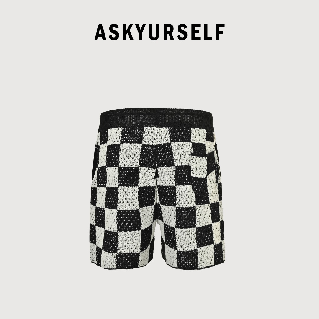 本地自取 💰180 Askyurself 25ss 棋盘格针织短裤 Askyurself 新品 众多明星上身 、说唱歌手、周汤豪在演唱会和NBA 太阳隊球员Cameron 💰ayne 上身加持 同款 🌟 潮牌休闲宽松针织垂感 单穿 叠穿都可以 半袖针织 麻丝提花毛线 重磅高级感 原版打造 Size:S-XL