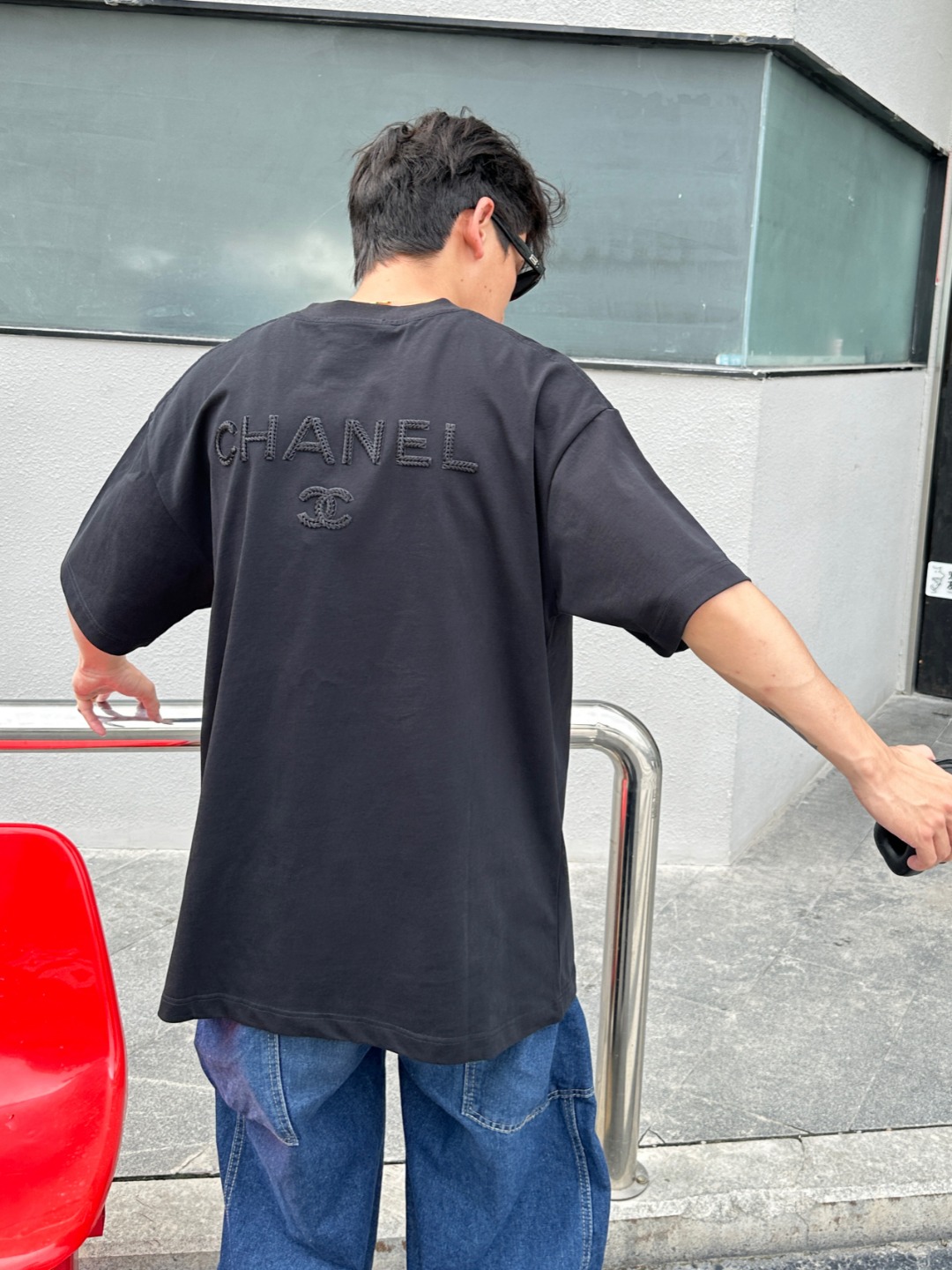 CHANEL/香奈儿 25ss 暗纹编织logo双C立体刺绣短袖T恤 上身效果#
