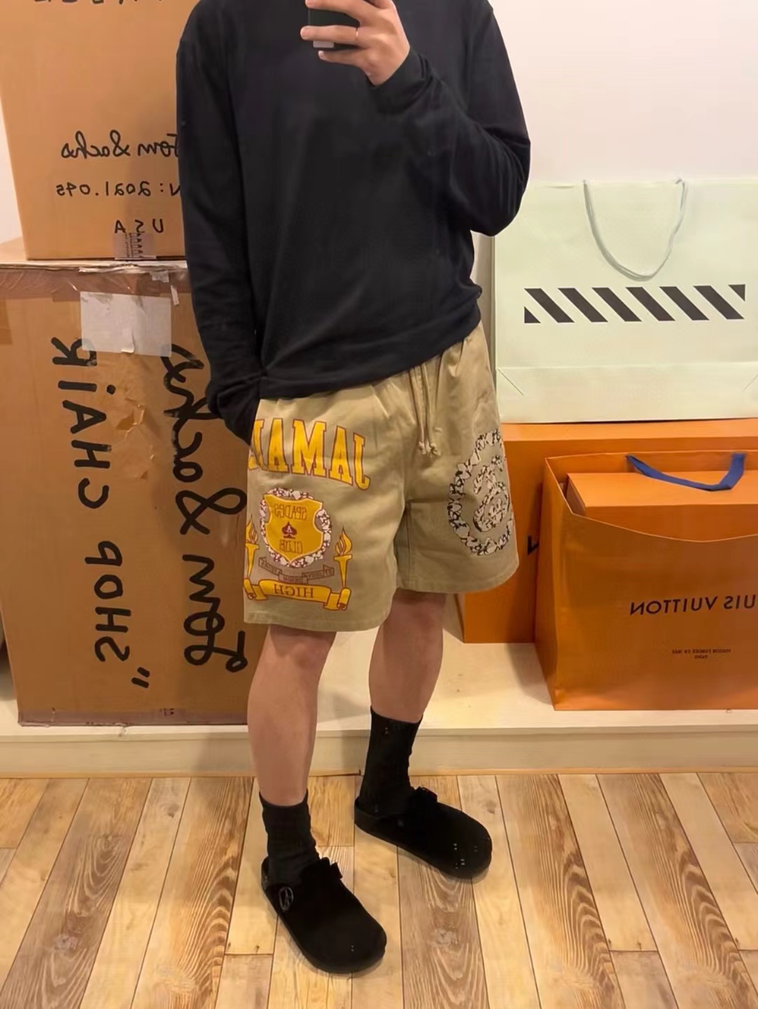 Stussy X Denim Tears 联名款 SS25 印花休闲短裤 上身效果#