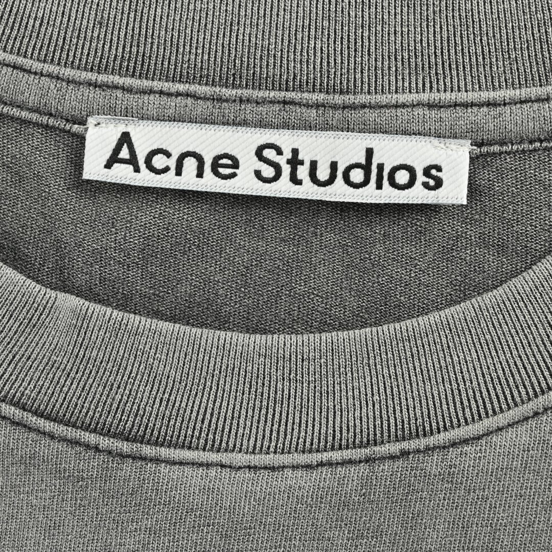 本地自取💰150 Acne Studios 25ss 后背透明小标水洗短袖 面料使用的是32支双股260克面料,32支双股的面料会更细腻更柔软,水洗做旧工艺的测试持续了一个多月,主要是在磨毛工艺上耗费了一些时间,因为不是常规的水洗效果,表面会有一层灰色拉绒的效果,面料需要先进行碳素磨毛工艺处理,才会使表面有一层拉绒的效果,十几次的改进之后才达到满意的效果,再经过一定的手感处理,使得整件衣服触感软糯亲肤,可以用德芙丝滑来形容毫不为过,糯糯的触感摸了就上瘾,衣服背后的硅胶标必须开模定制,2000个起订量,第一批衣服只有200多件,因为水洗做旧产生了一定的报废率,辅料全部定做,吊牌标全部齐全,这款衣服还有一个重要细节容易被忽略,那就是衣服的前片两侧缝制位置是向后的,两边肩膀处也是如此,并且下摆带有轻微的弧度,这是一个不寻常的设计,这个细节也做到了,经典圆领宽松版型,上身有型,色系简约,经典耐穿百搭,有效拉长身型比例,男女同款 Size:S-XL