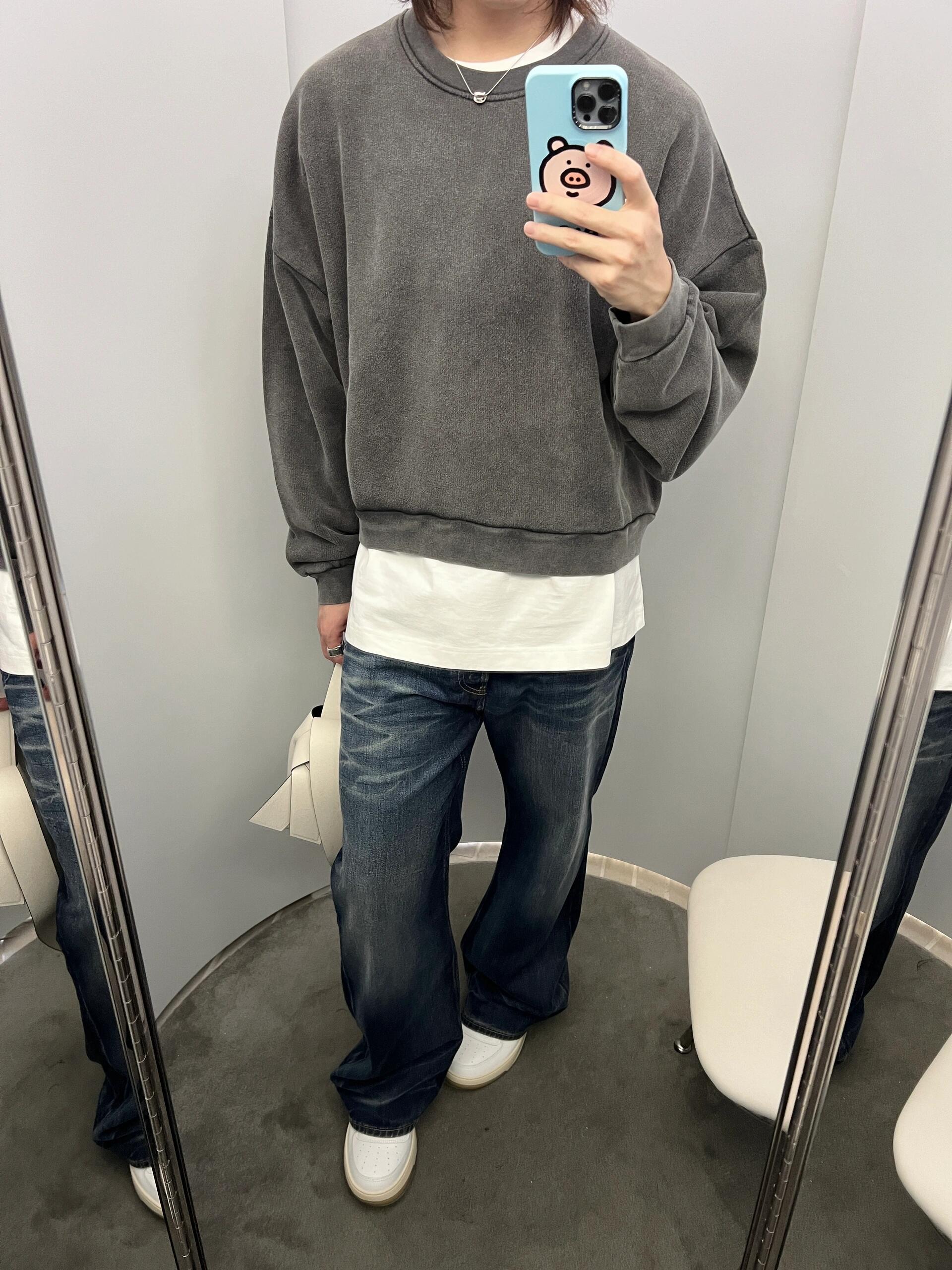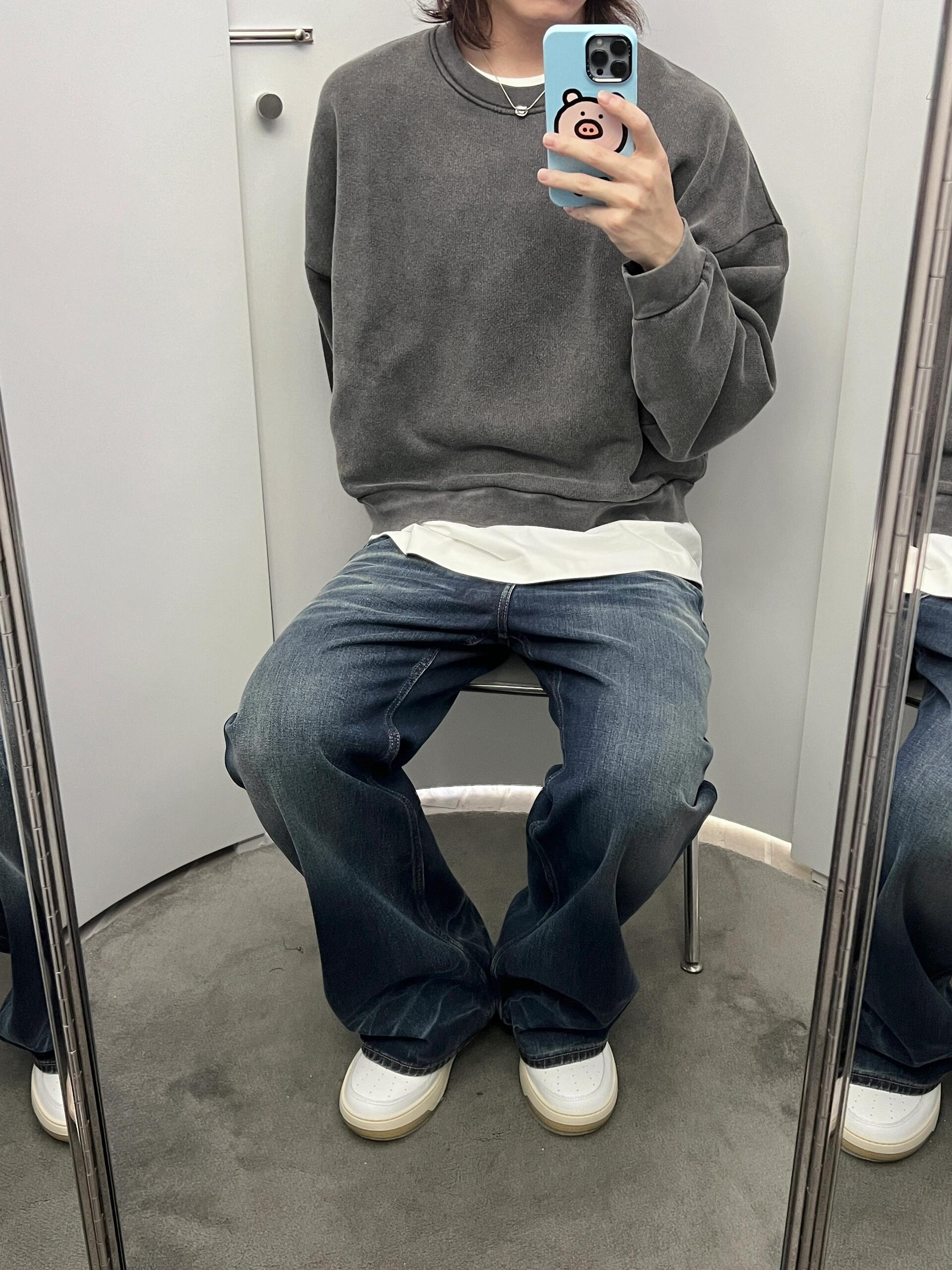 Acne Studios 24Fw 2021M蓝色水波纹牛仔长裤 上身效果#