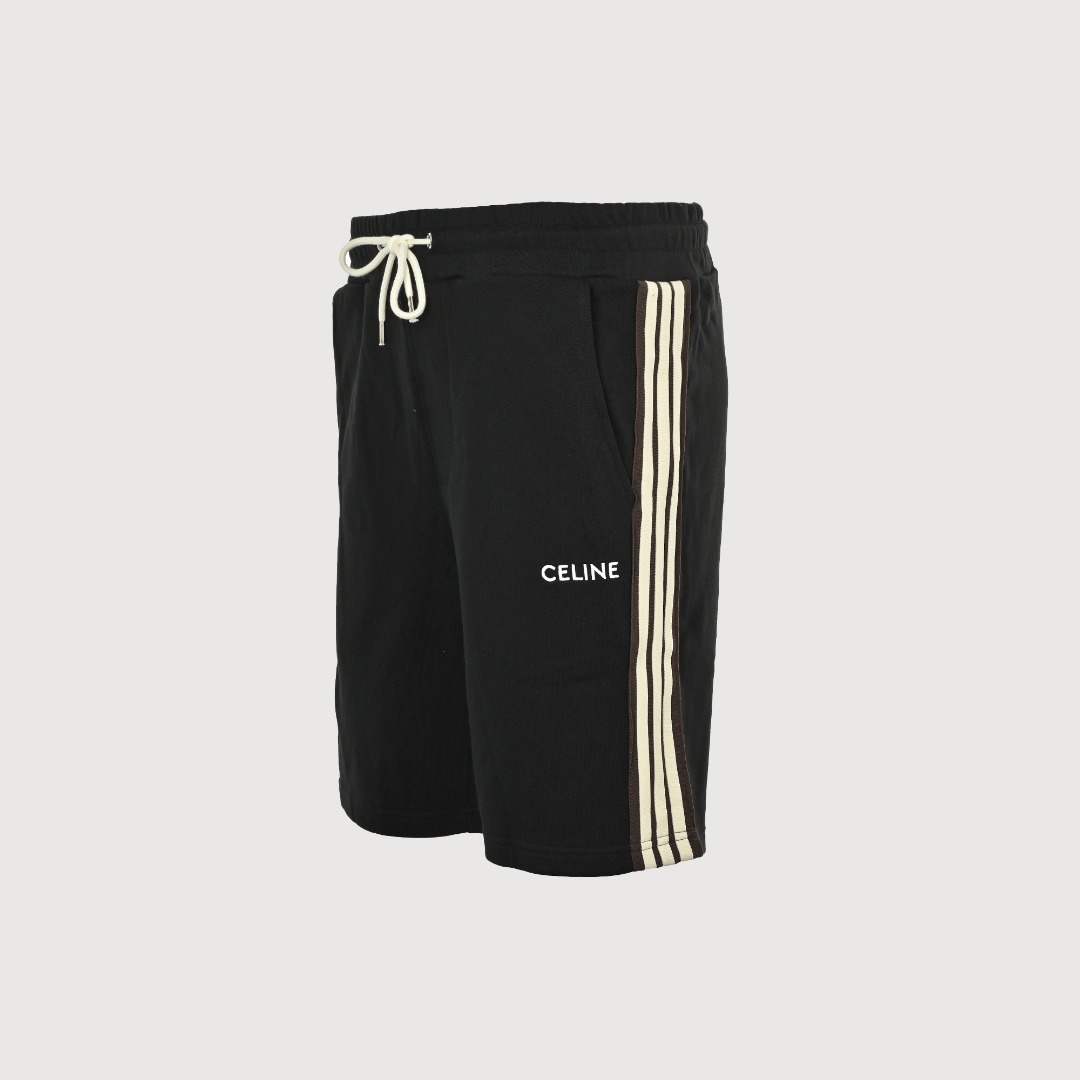 本地自取💰170 Celine/赛琳 经典侧边织带短裤 复古潮流织带点缀松紧腰休闲五分裤!!很经典的一款,松紧腰 两侧插袋 两侧织带的点缀点缀设计 复古潮流的同时又有细节感!面料采用客供定织高支纯棉料,上身透气,柔软亲肤,手感细腻、 腰部针织松紧腰加抽绳,上身不用担心过松过紧 的不舒适感 。男女同款 颜色:黑色 深灰 Size:S-XL