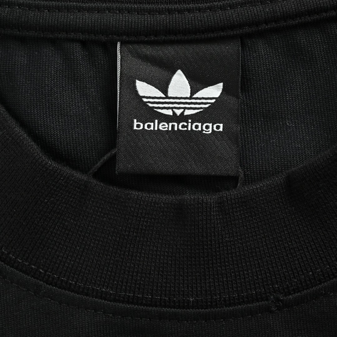 本地自取💰140 Balenciaga X adidas联名 三叶草logo压胶短袖T恤 面料采用300克重磅洗水纯棉 特定重磅21S精棉平纹针织面料 搭配32s+70D拉架螺纹 95%精棉*5%氨纶双纱罗纹 精纺棉材质轻薄透气 上手棉感偏强 透气性吸湿性强 螺纹运用混纺工艺 织成精梳棉布料 使面料摸上去就十分柔软 全套新款巴黎世家辅料 男女同款均可驾驭 oversize宽松落肩版型,任何身材轻松驾驭 颜色:黑色 白色 size: XS-L