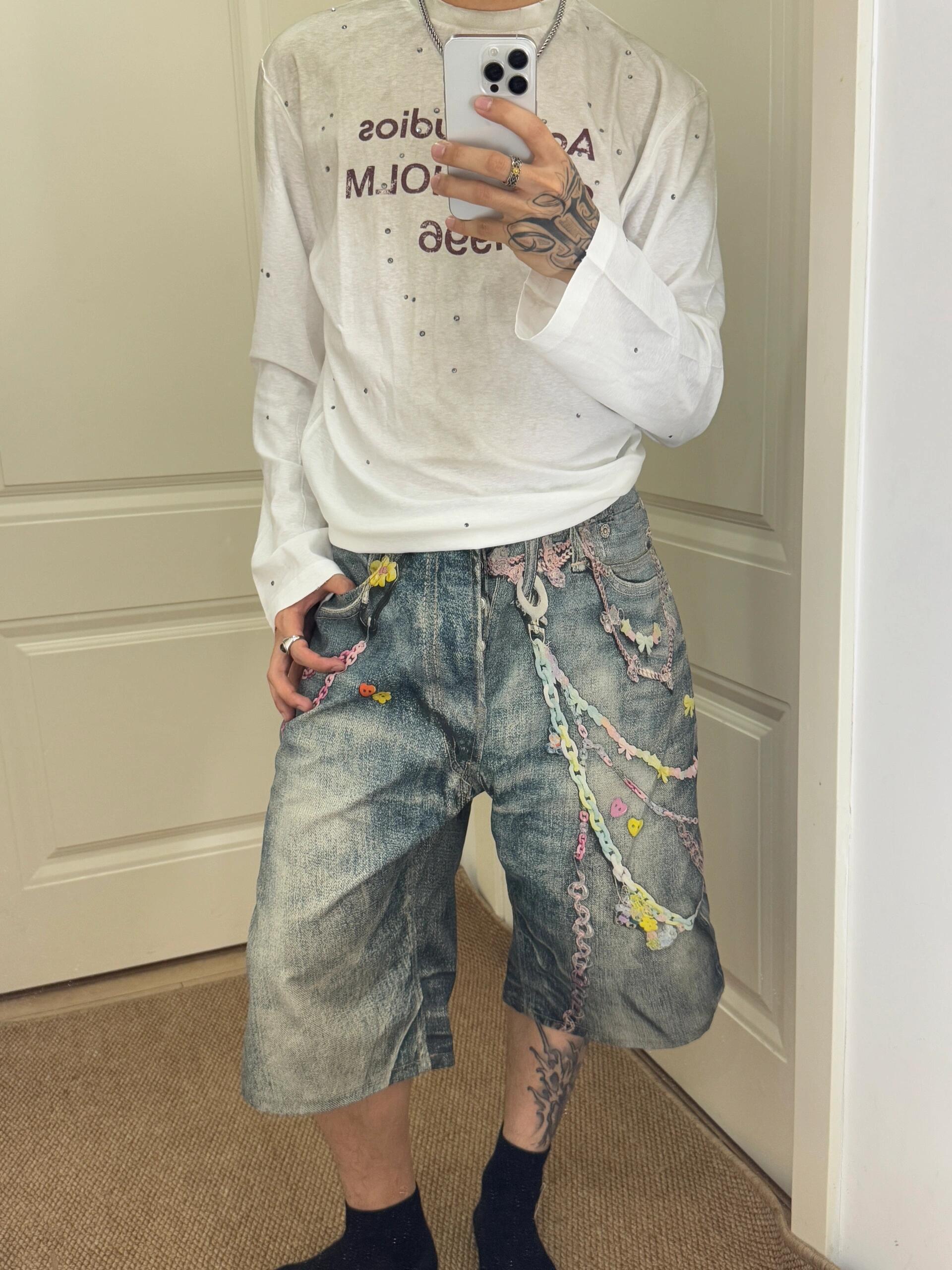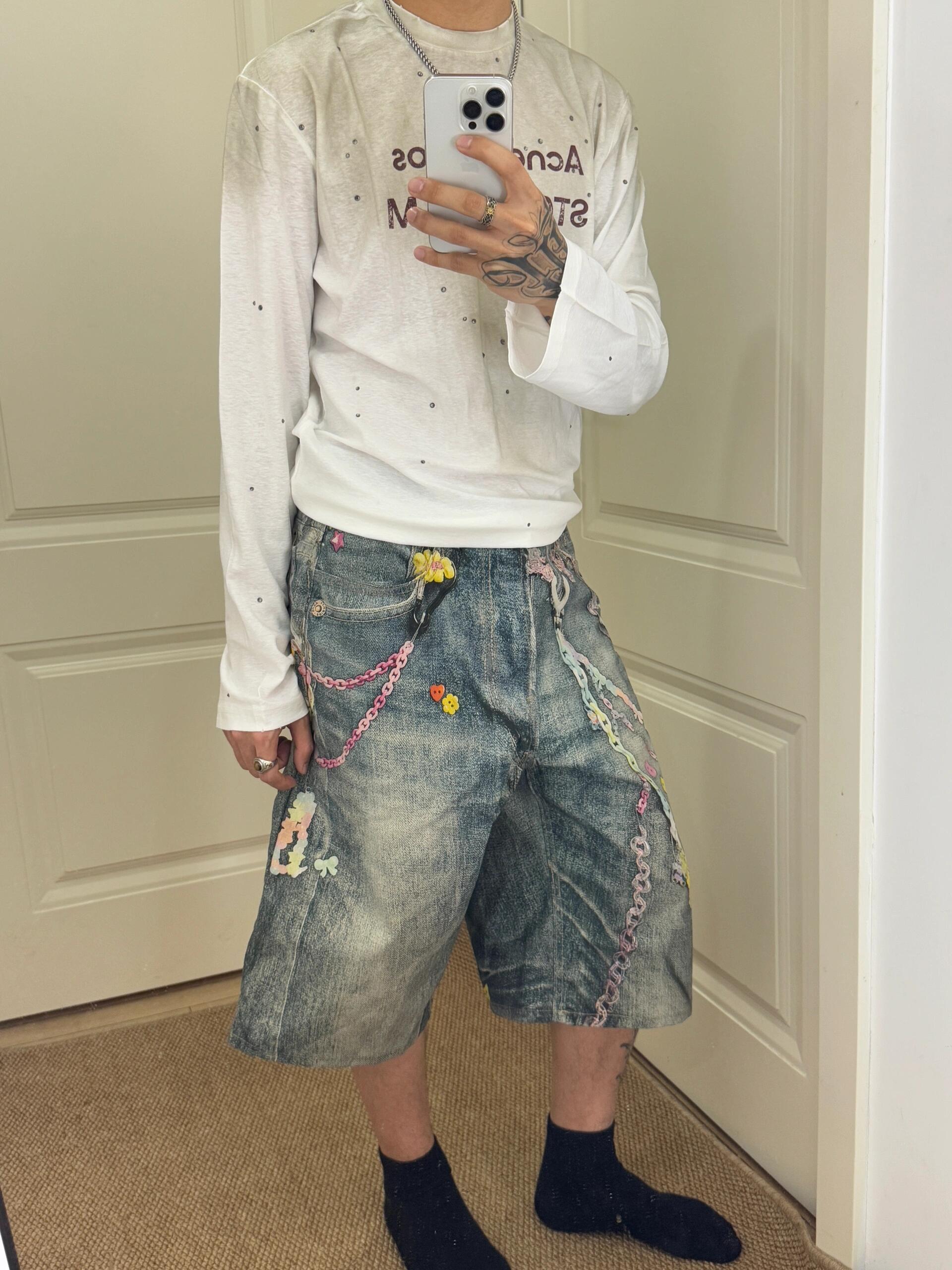 Acne Studios 25ss 糖果链条七分牛仔短裤 上身效果#