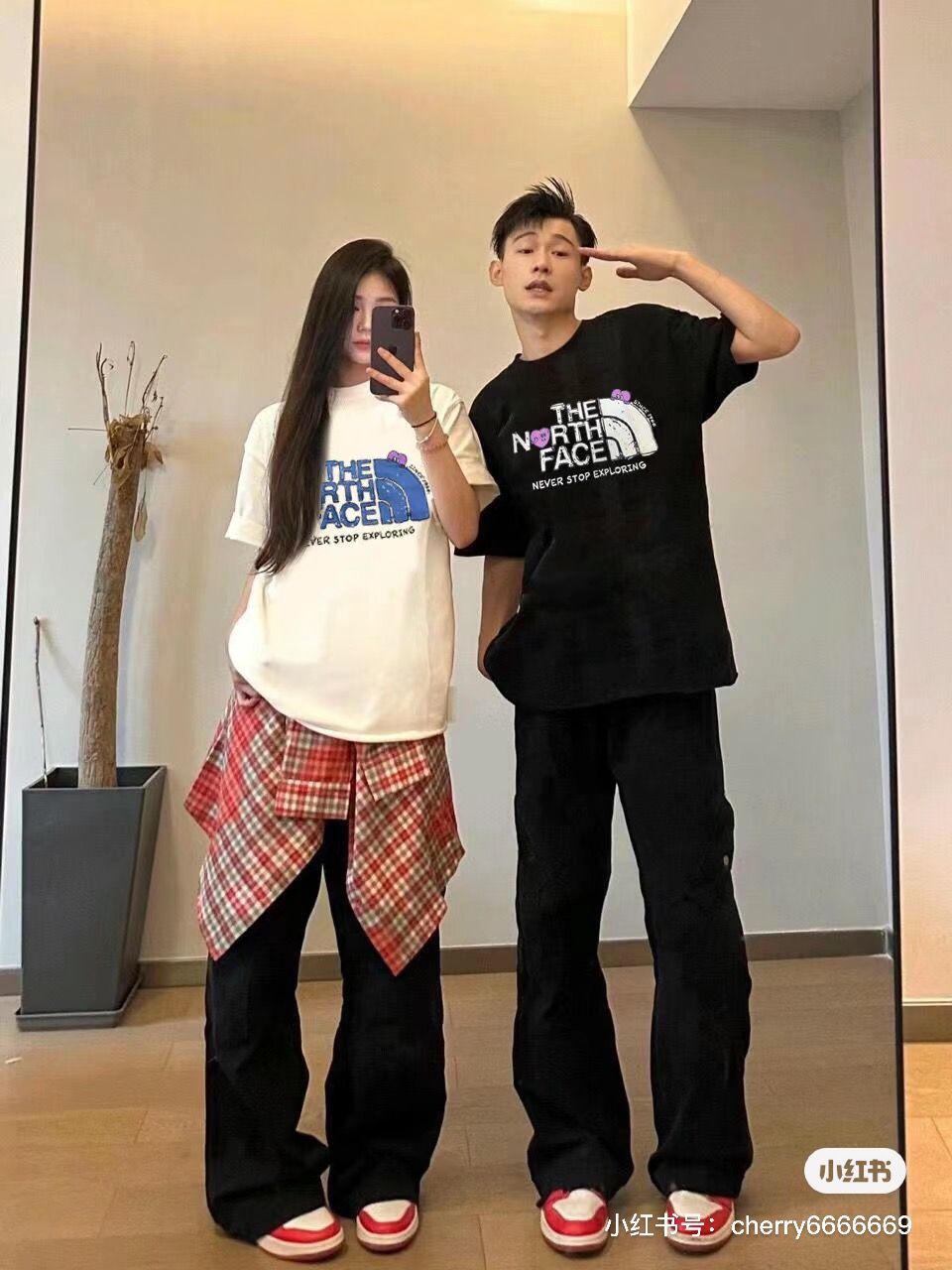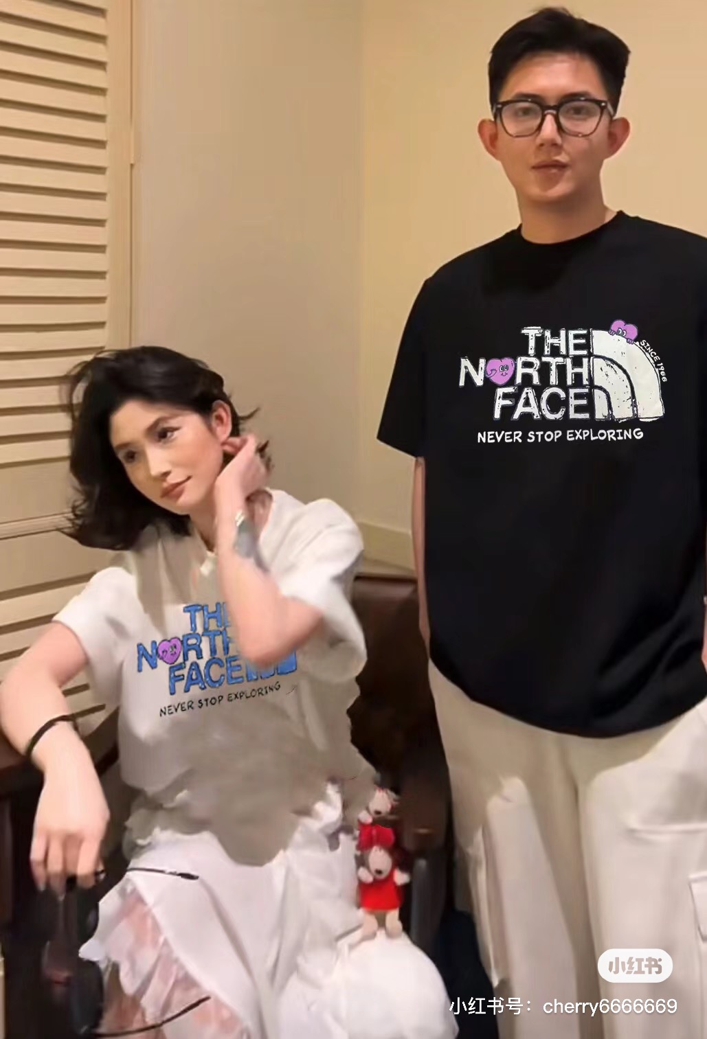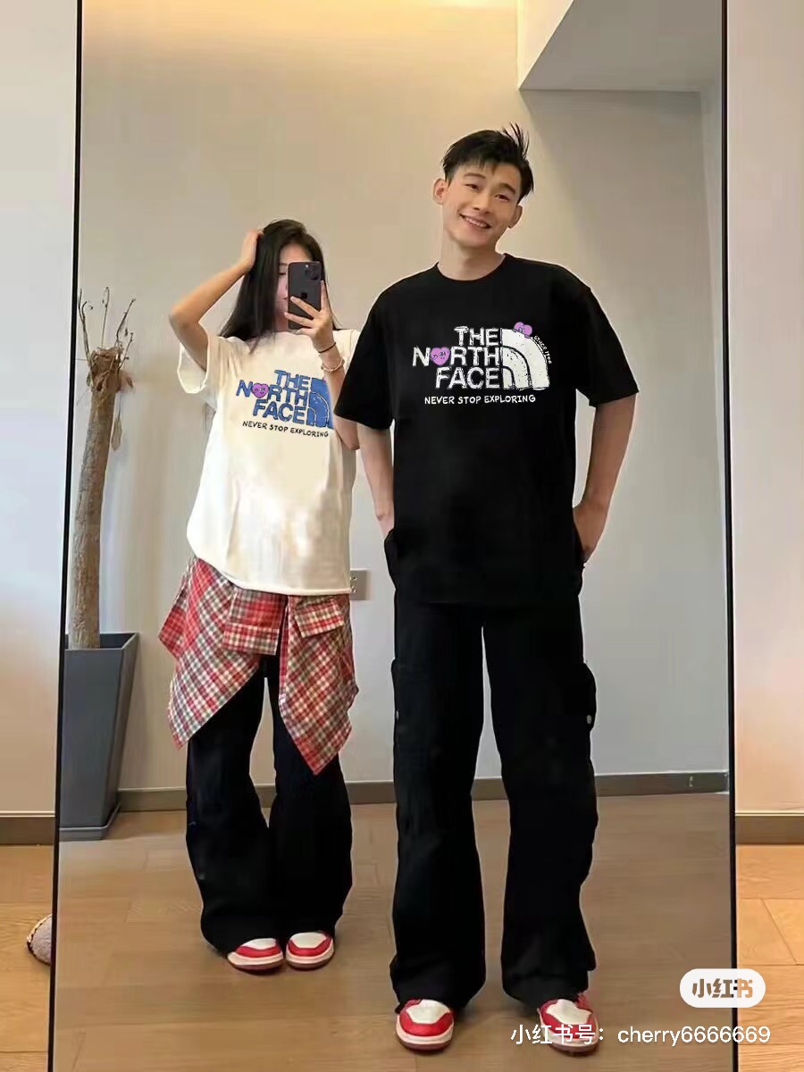 TheNorthface 北面 2024夏季款情人节限定情侣爱心印花T恤 上身效果#