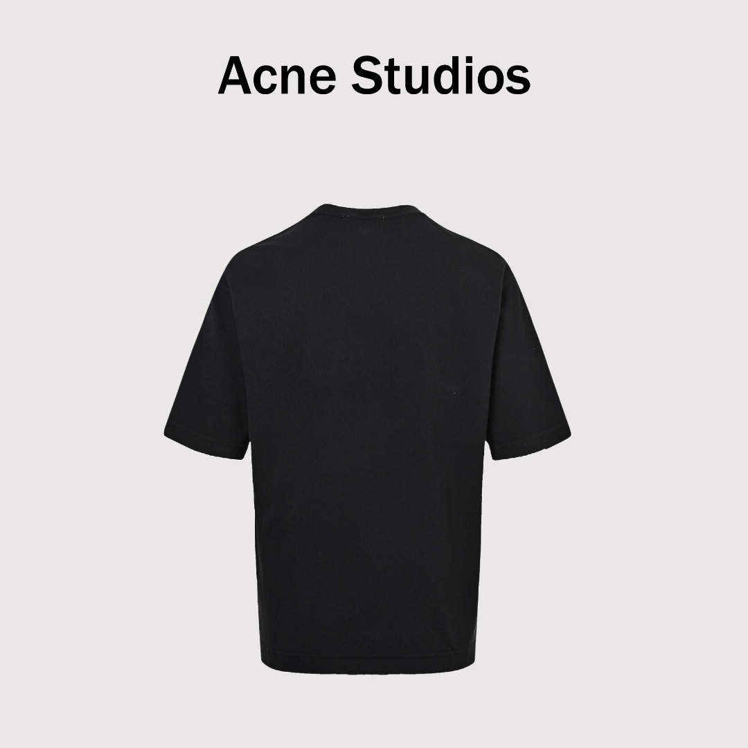 本地自取💰150 Acne Studios 25SS 字母刺绣短袖T恤 选用280g双纱面料 定染高密螺纹 成衣水洗质感十足 正面为笑脸贴布绣花 背部领子笑脸刺绣 拼接处均为三针五线 细节满满 宽松版型 尺码:S-XL
