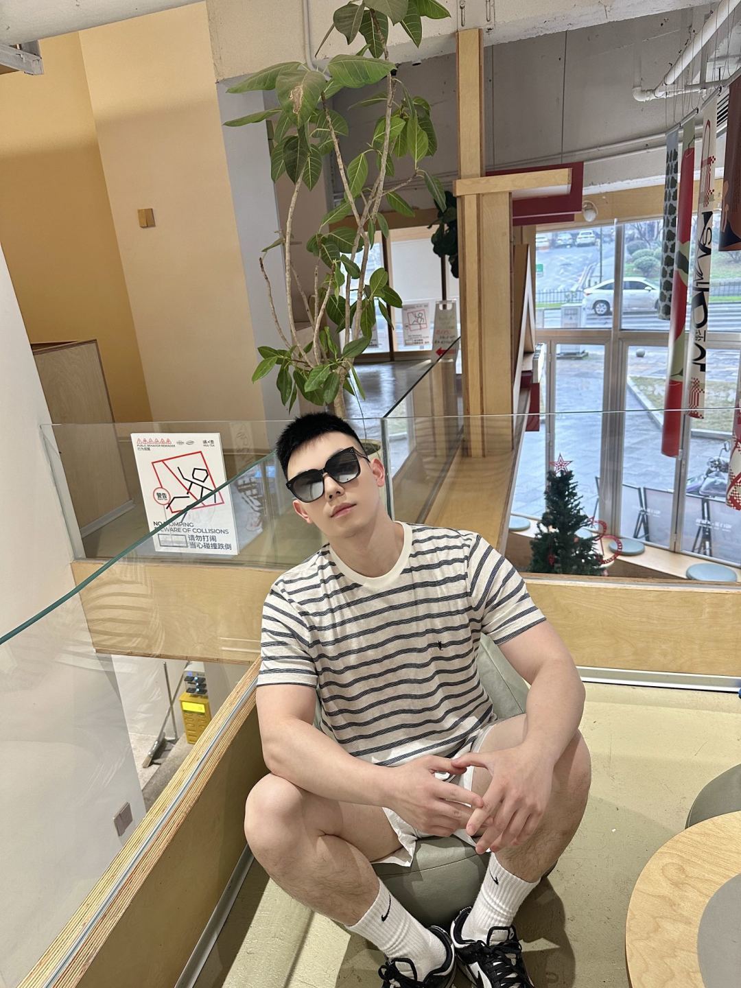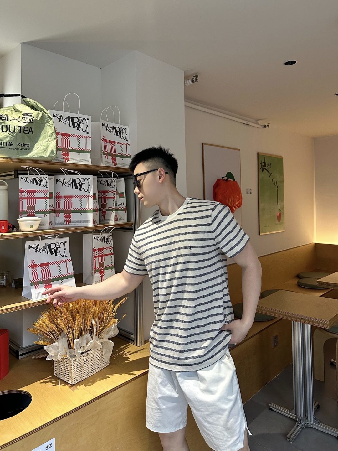 Saint Laurent圣罗兰SLP 标识黑白横条纹短袖T恤 上身效果#