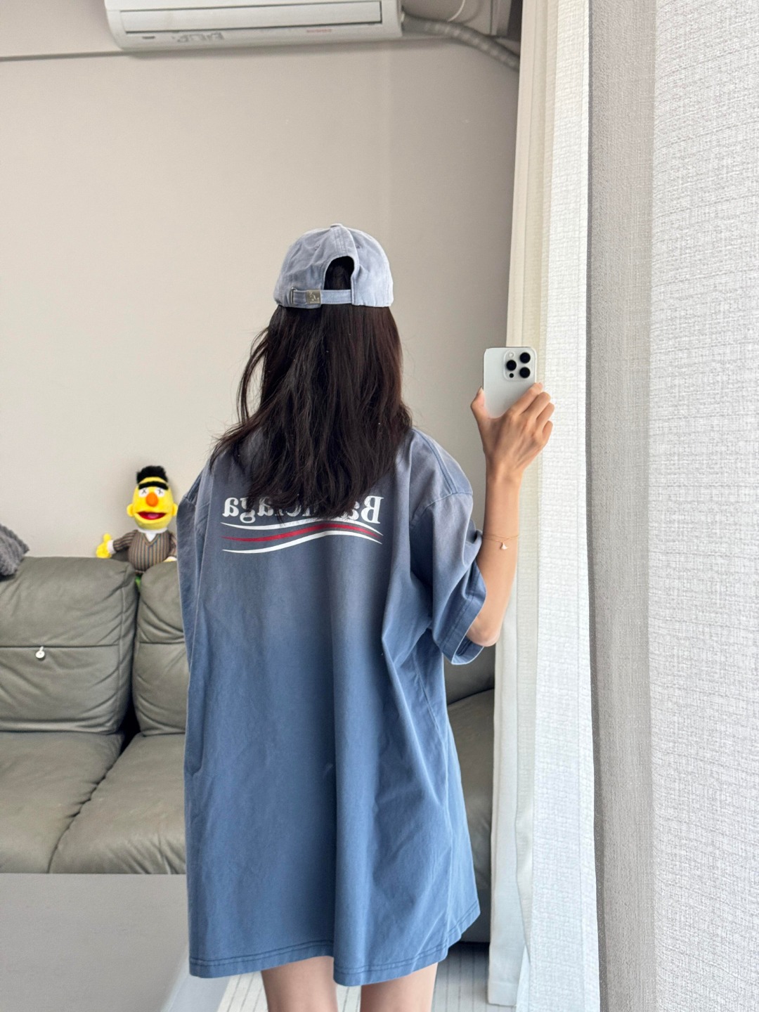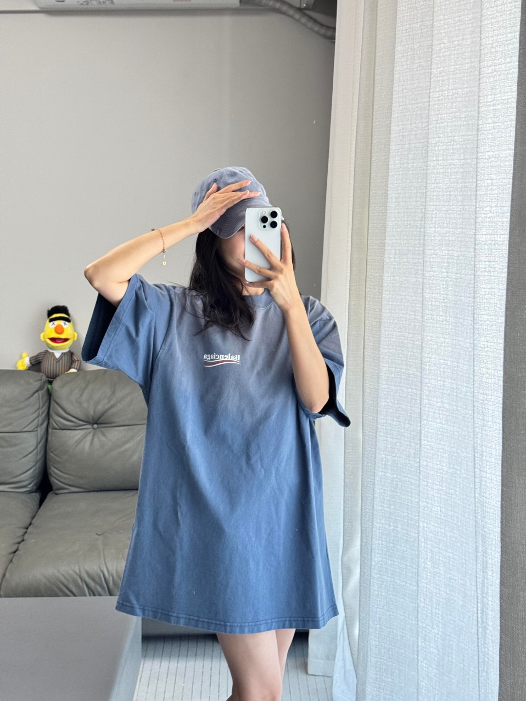 Balenciaga/巴黎世家 25ss 日晒褪色可乐印花短袖-雾霾蓝 上身效果#