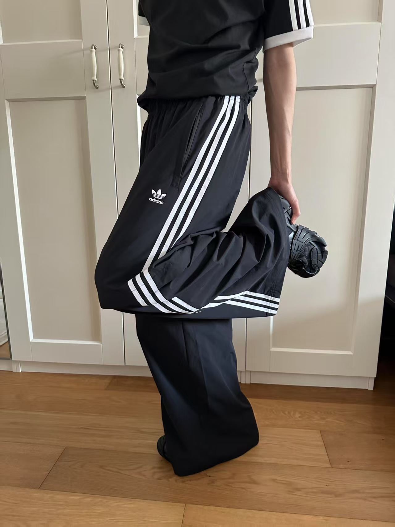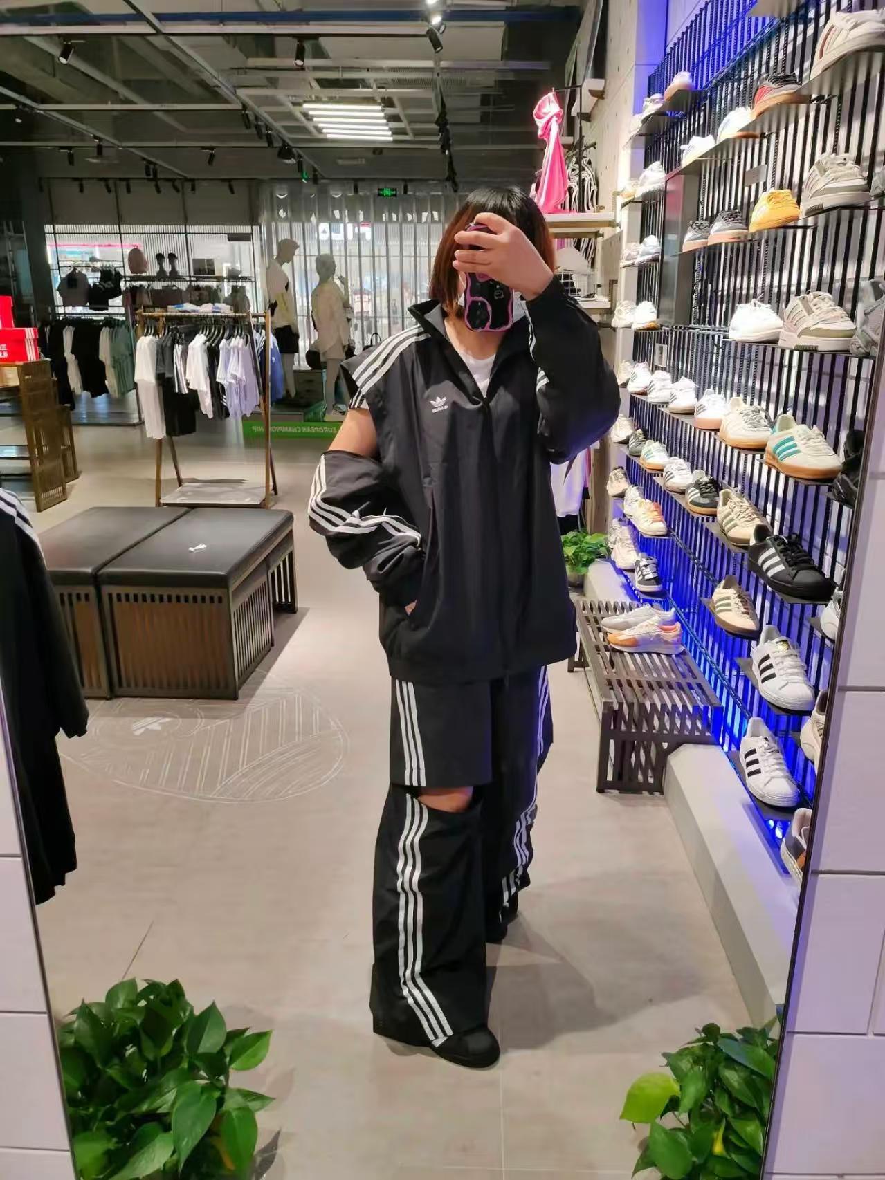 Adidas/三叶草 拆卸款扭扭套装徽章小logo拉链长裤 上身效果#