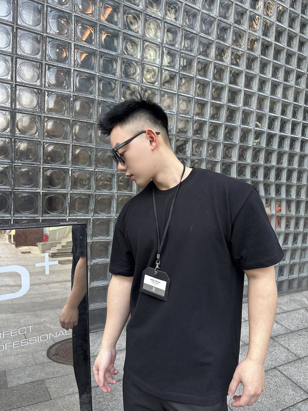 Saint Laurent圣罗兰SLP YSL小标识刺绣短袖T恤 上身效果#
