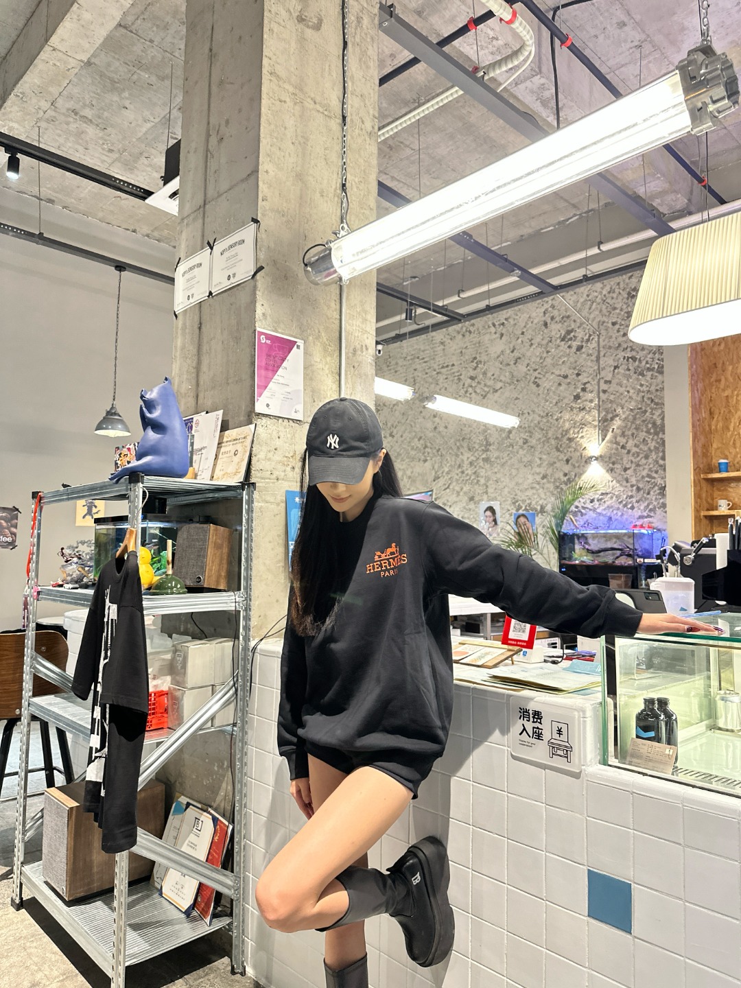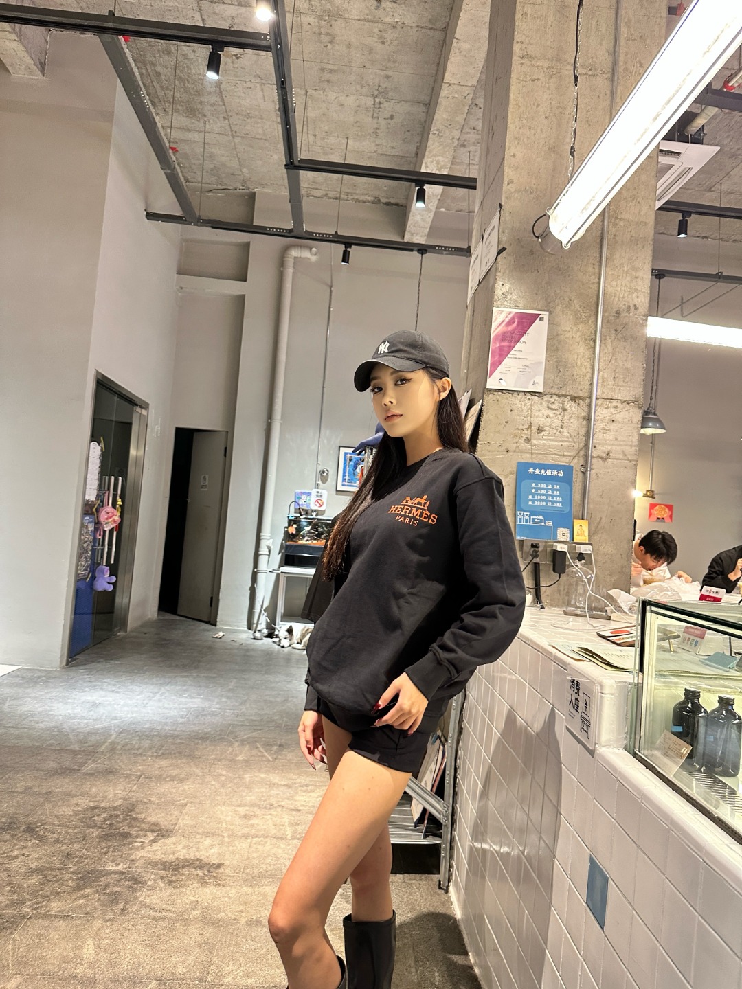 Hermes 爱马仕 24FW 字母logo印花圆领卫衣 上身效果#