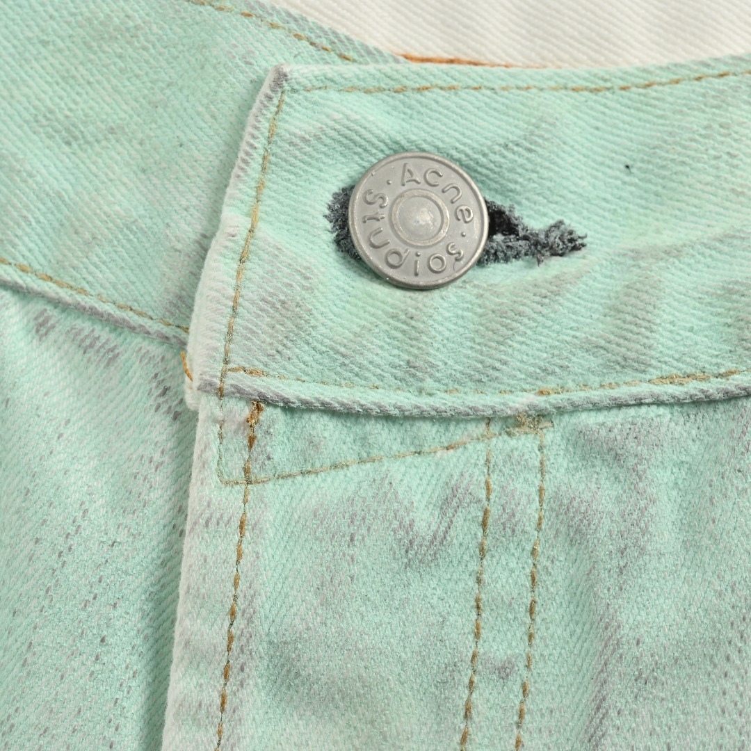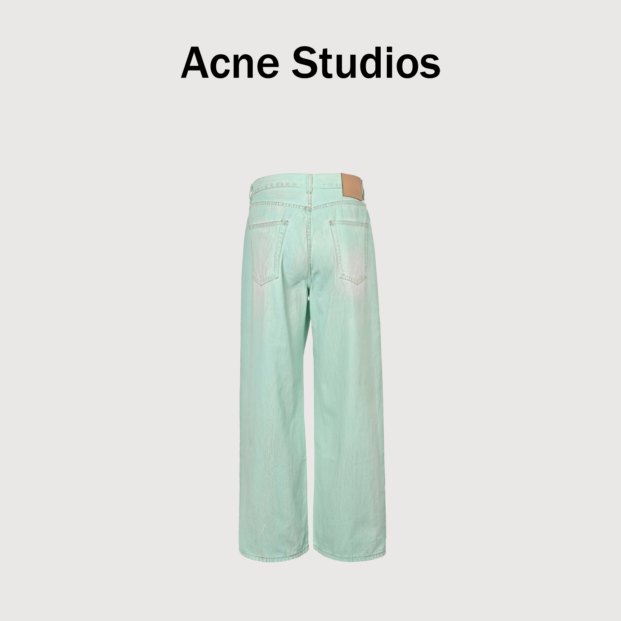 本地自取💰360 Acne Studios 24Fw 1981M荧光薄荷绿牛仔长裤 定制350克100%棉径向竹节牛仔面料,国内T1级牛仔面料厂出品,整条裤子用的面料特殊需要做重工艺的洗水,因为有荧光涂层所以考究面料耐腐蚀性,另外说下这个裤子的工艺,先水洗一遍做脱浆处理,第二遍做洗水喷马骝上色,等固色马骝褪色之后,然后送去做荧光颜料涂层,最后再去洗水做脏,定制真皮牛皮皮牌,开模压花 Size:42 44 46 48 50