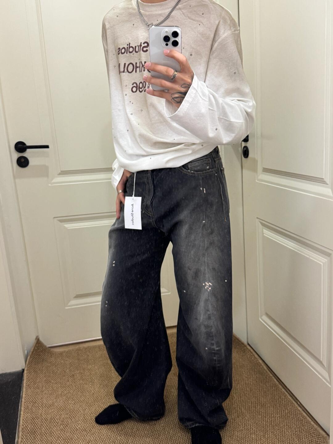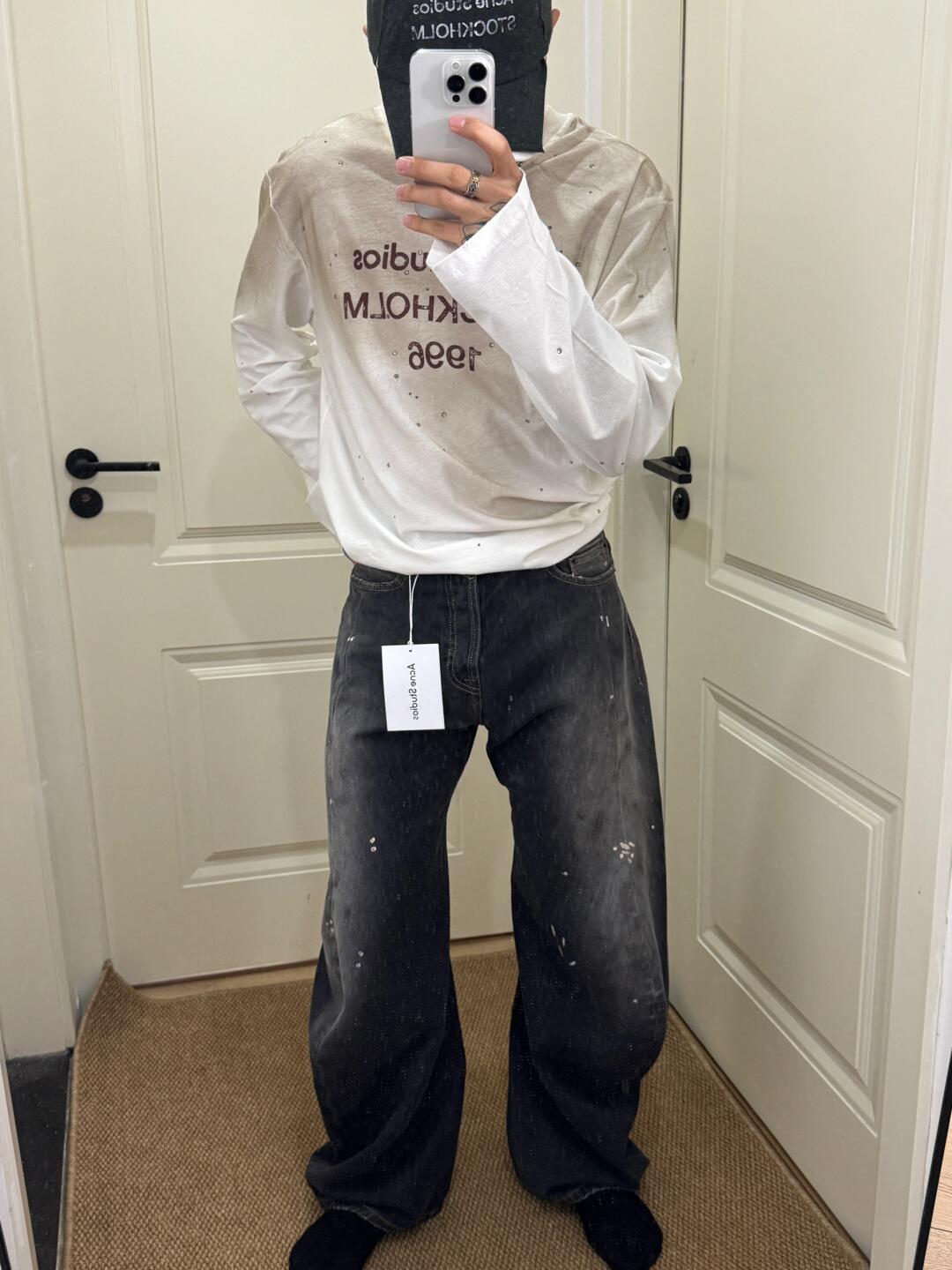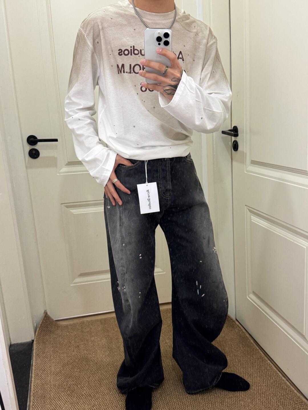 Acne Studios 24Fw 2006M泼墨牛仔长裤 上身效果#