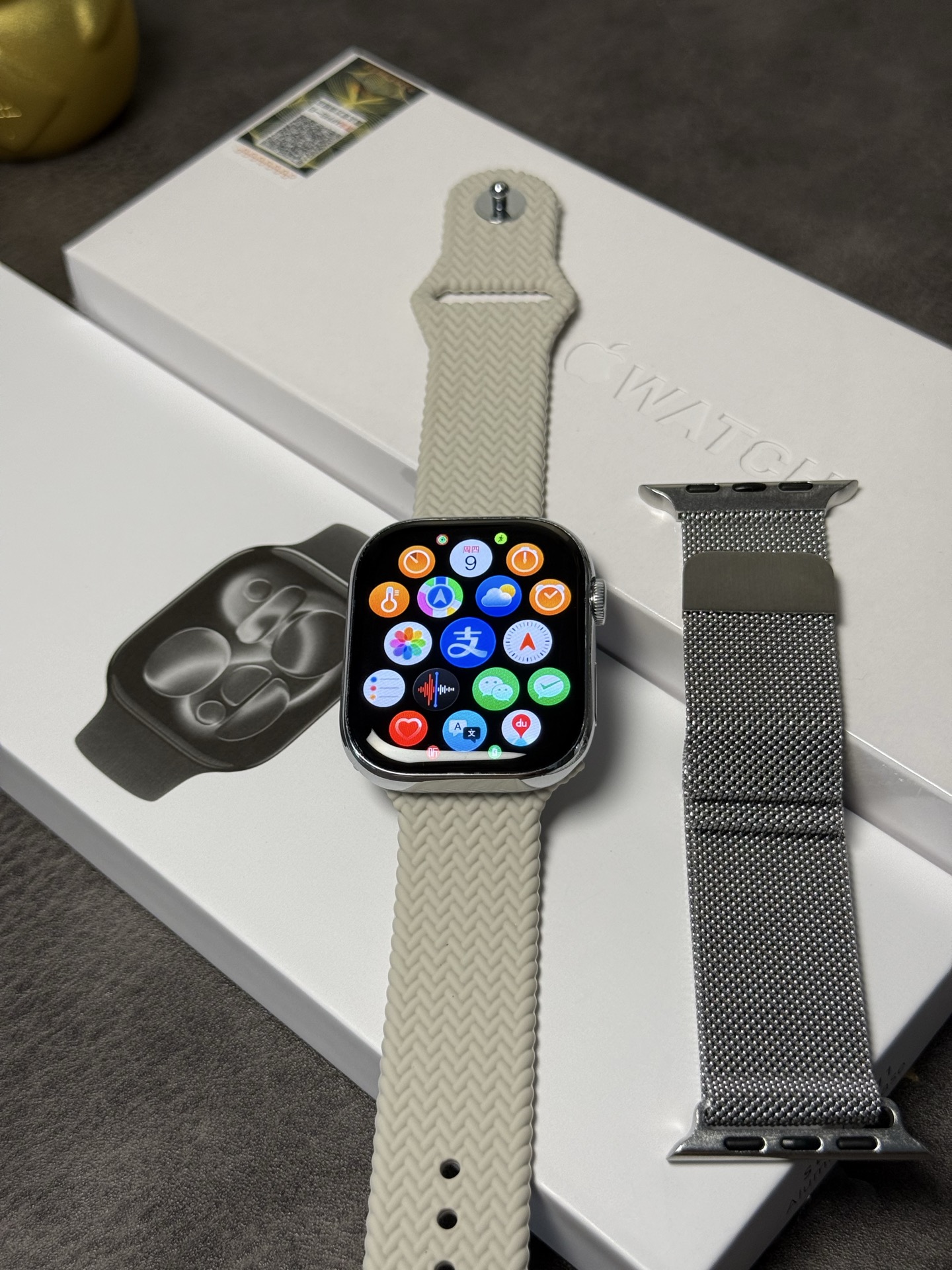 新款11代出货💯💰190 苹果AppleWatch Series11 苹果11代手表 升级版 全新升级苹果新款IOS26系统同款玻璃质感界面 新增回复微信消息功能‼️各位期待的升级款来了 目前唯一能在手表上直接回复微信消息的1:1苹果手表 莆田京东升级款 外包装跟正品一样带苹果图标 手表包装带序列号 可在官网查询保修✔️ 到手逼格跟正品无异!区别市面华强北一眼假版本 46/42mm两种尺寸表盘可选‼️没备注默认发46mm 标配Amoled高清屏 黑暗环境下屏幕不会发灰漏光 398mah高压电池 常规使用续航可达3天左右 全触海栎创816D触控方案 操作顺滑 运行流畅不卡顿 IP67级防水日常洗手/淋雨都不怕 新增功能1️⃣ 健康监测,贴心守护:内置专业的心率、血压、血氧传感器,实时精准监测身体指标。睡眠监测功能也很强大,能分析睡眠质量,给出改善建议,就像私人健康管家,时刻关注身体状况 新增功能2️⃣ 蓝牙5.3连接超稳定,来电、短信、微信等通知实时提醒,支持手表回复微信消息!AI语音助手超智能,查天气、设闹钟等 新增功能3️⃣ 支持运动记录助力锻炼:支持跑步、骑行、瑜伽等几十种运动模式,自动识别运动状态,精准记录运动轨迹、步数、卡路里消耗等数据。 新增功能4️⃣ 支持登录微信、回复微信消息!支付宝离线支付,出门不用带钱包,抬手一扫就能付款,购物、乘车超方便。还具备NFC功能,刷门禁轻松进出小区、办公楼。 新增功能5️⃣ 支持下载小软件 上传照片/音乐等操作 手表可存储音乐 不带手机也能连接蓝牙耳机听歌 功能非常多 欢迎各位到手亲自把玩! 手表支持售后保修 报货赠送图中2条表带 水凝保护膜 非人为造成的免费保修三个月 屏幕膜不撕支持退换‼️