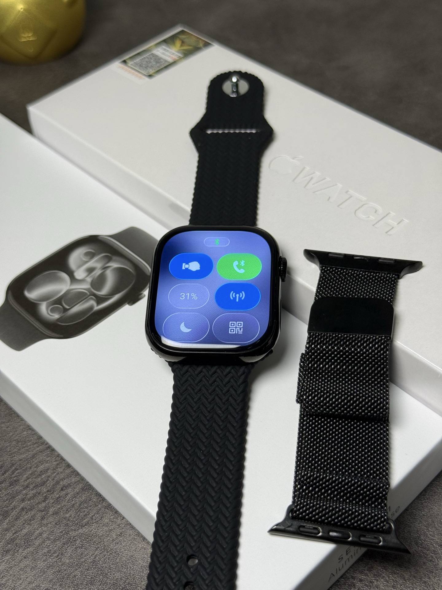 新款11代出货💯💰190 苹果AppleWatch Series11 苹果11代手表 升级版 全新升级苹果新款IOS26系统同款玻璃质感界面 新增回复微信消息功能‼️各位期待的升级款来了 目前唯一能在手表上直接回复微信消息的1:1苹果手表 莆田京东升级款 外包装跟正品一样带苹果图标 手表包装带序列号 可在官网查询保修✔️ 到手逼格跟正品无异!区别市面华强北一眼假版本 46/42mm两种尺寸表盘可选‼️没备注默认发46mm 标配Amoled高清屏 黑暗环境下屏幕不会发灰漏光 398mah高压电池 常规使用续航可达3天左右 全触海栎创816D触控方案 操作顺滑 运行流畅不卡顿 IP67级防水日常洗手/淋雨都不怕 新增功能1️⃣ 健康监测,贴心守护:内置专业的心率、血压、血氧传感器,实时精准监测身体指标。睡眠监测功能也很强大,能分析睡眠质量,给出改善建议,就像私人健康管家,时刻关注身体状况 新增功能2️⃣ 蓝牙5.3连接超稳定,来电、短信、微信等通知实时提醒,支持手表回复微信消息!AI语音助手超智能,查天气、设闹钟等 新增功能3️⃣ 支持运动记录助力锻炼:支持跑步、骑行、瑜伽等几十种运动模式,自动识别运动状态,精准记录运动轨迹、步数、卡路里消耗等数据。 新增功能4️⃣ 支持登录微信、回复微信消息!支付宝离线支付,出门不用带钱包,抬手一扫就能付款,购物、乘车超方便。还具备NFC功能,刷门禁轻松进出小区、办公楼。 新增功能5️⃣ 支持下载小软件 上传照片/音乐等操作 手表可存储音乐 不带手机也能连接蓝牙耳机听歌 功能非常多 欢迎各位到手亲自把玩! 手表支持售后保修 报货赠送图中2条表带 水凝保护膜 非人为造成的免费保修三个月 屏幕膜不撕支持退换‼️