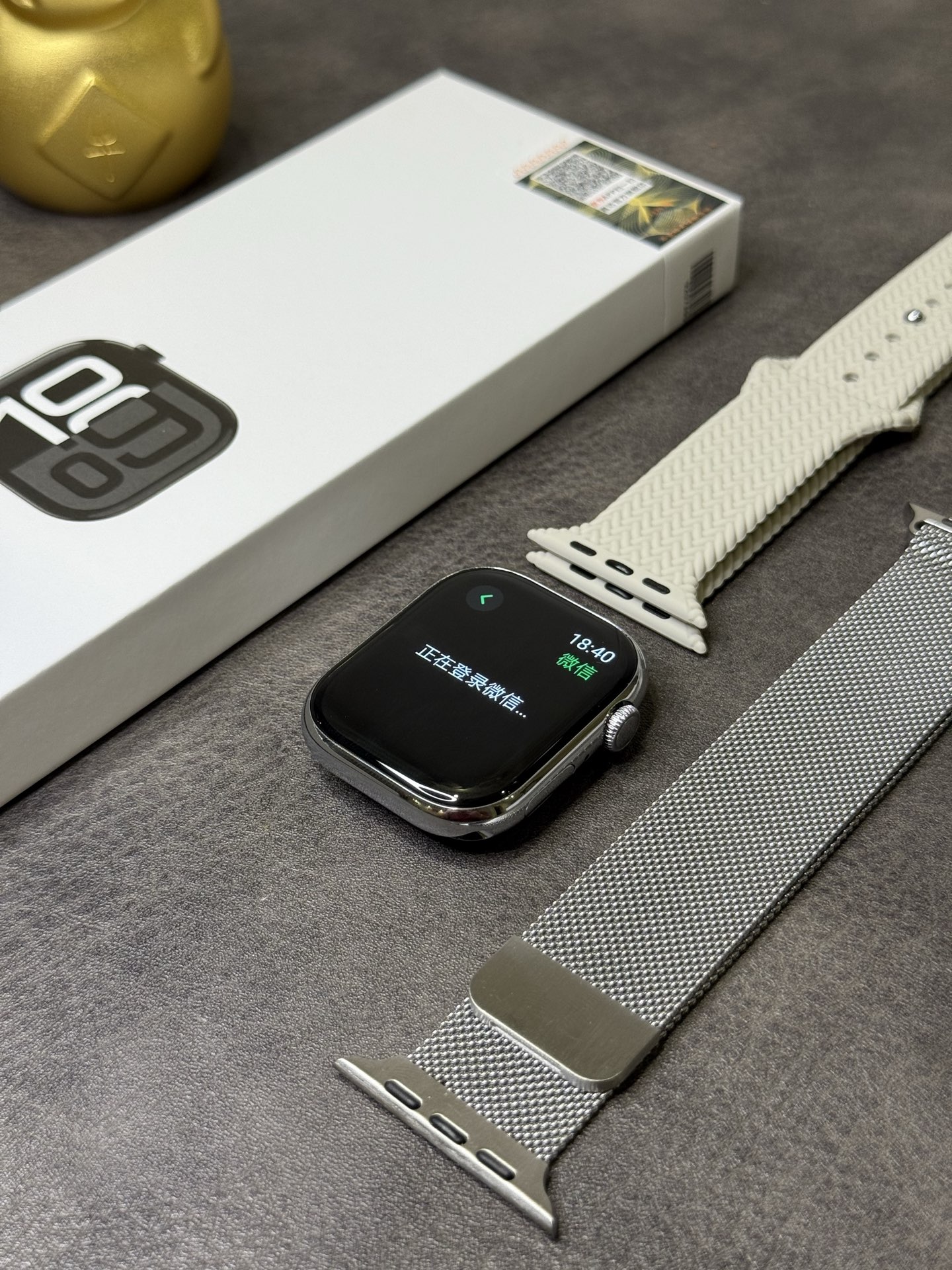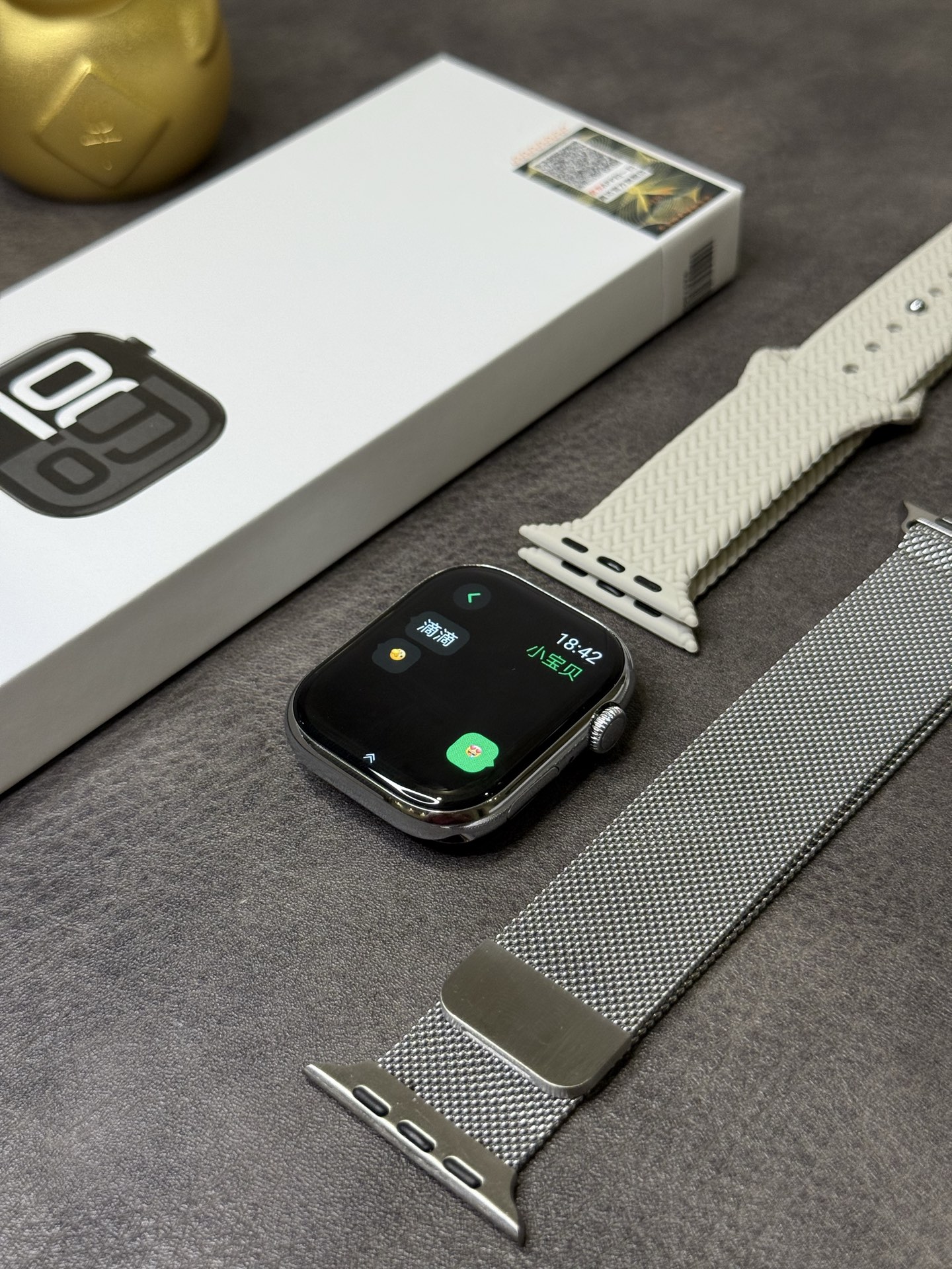 支持登录微信‼️💰190 苹果Apple Watch S10 苹果手表 京东升级版 新增回复微信消息功能‼️各位期待的升级款来了 目前唯一能在手表上直接回复微信消息的1:1苹果手表 莆田京东升级款 外包装跟正品一样带苹果图标 到手逼格跟正品无异!区别市面华强北一眼假版本 46mm不锈钢表壳 标配Amoled高清屏 黑边非常小 398mah高压电池 常规使用续航可达3天左右 全触海栎创816D触控方案 操作顺滑 运行流畅不卡顿 IP67级防水日常洗手/淋雨都不怕 新增功能1️⃣ 健康监测,贴心守护:内置专业的心率、血压、血氧传感器,实时精准监测身体指标。睡眠监测功能也很强大,能分析睡眠质量,给出改善建议,就像私人健康管家,时刻关注身体状况 新增功能2️⃣ 蓝牙5.3连接超稳定,来电、短信、微信等通知实时提醒,支持手表回复微信消息!AI语音助手超智能,查天气、设闹钟等 新增功能3️⃣ 支持运动记录助力锻炼:支持跑步、骑行、瑜伽等几十种运动模式,自动识别运动状态,精准记录运动轨迹、步数、卡路里消耗等数据。 新增功能4️⃣ 支持微信、支付宝双支付,出门不用带钱包,抬手一扫就能付款,购物、乘车超方便。还具备NFC功能,刷门禁轻松进出小区、办公楼。 新增功能5️⃣ 支持下载小软件 上传照片/音乐等操作 手表可存储音乐 不带手机也能连接蓝牙耳机听歌 功能非常多 欢迎各位到手亲自把玩! 手表支持售后保修 非人为造成的免费保修三个月 屏幕膜不撕支持退换‼️