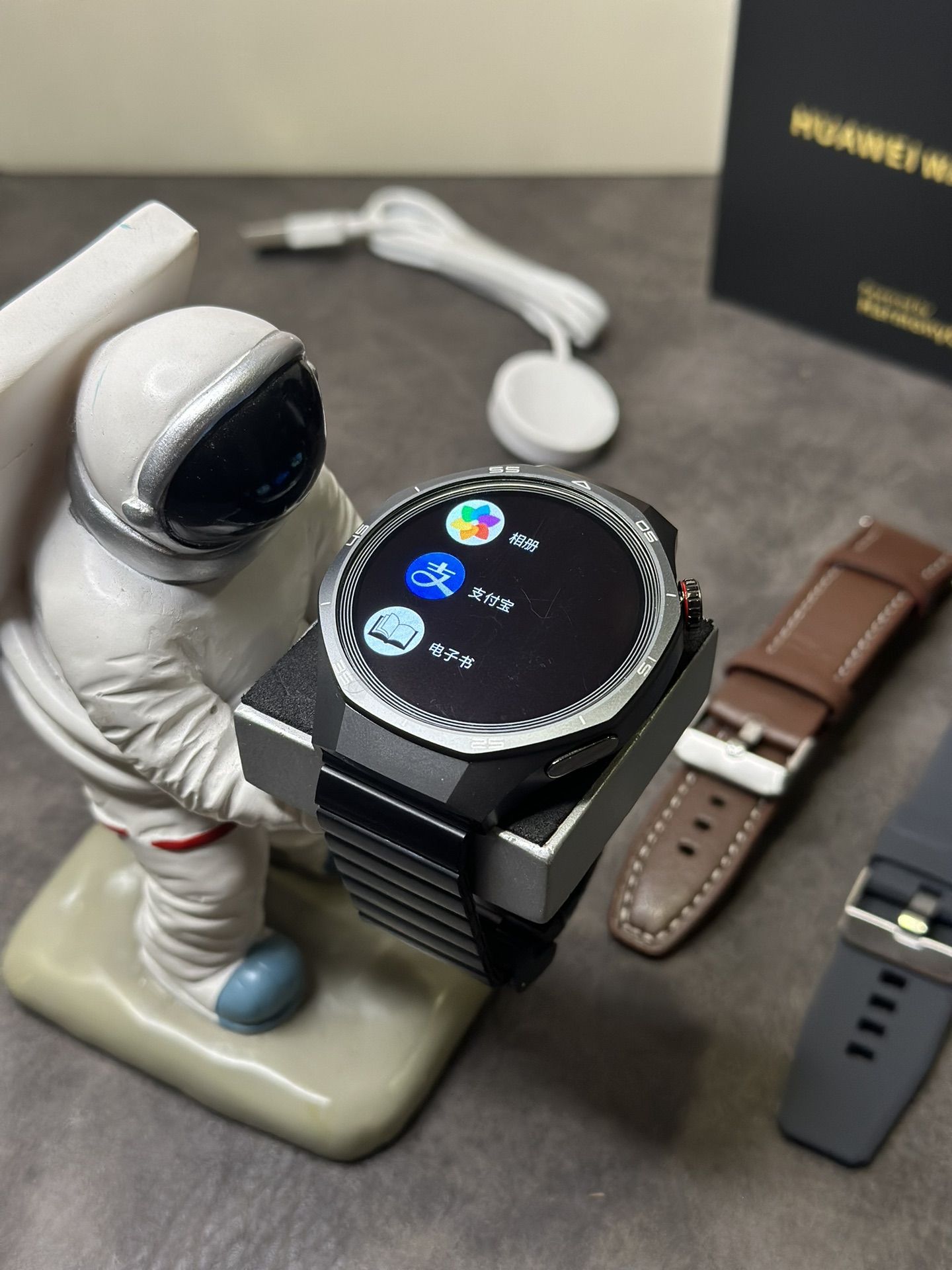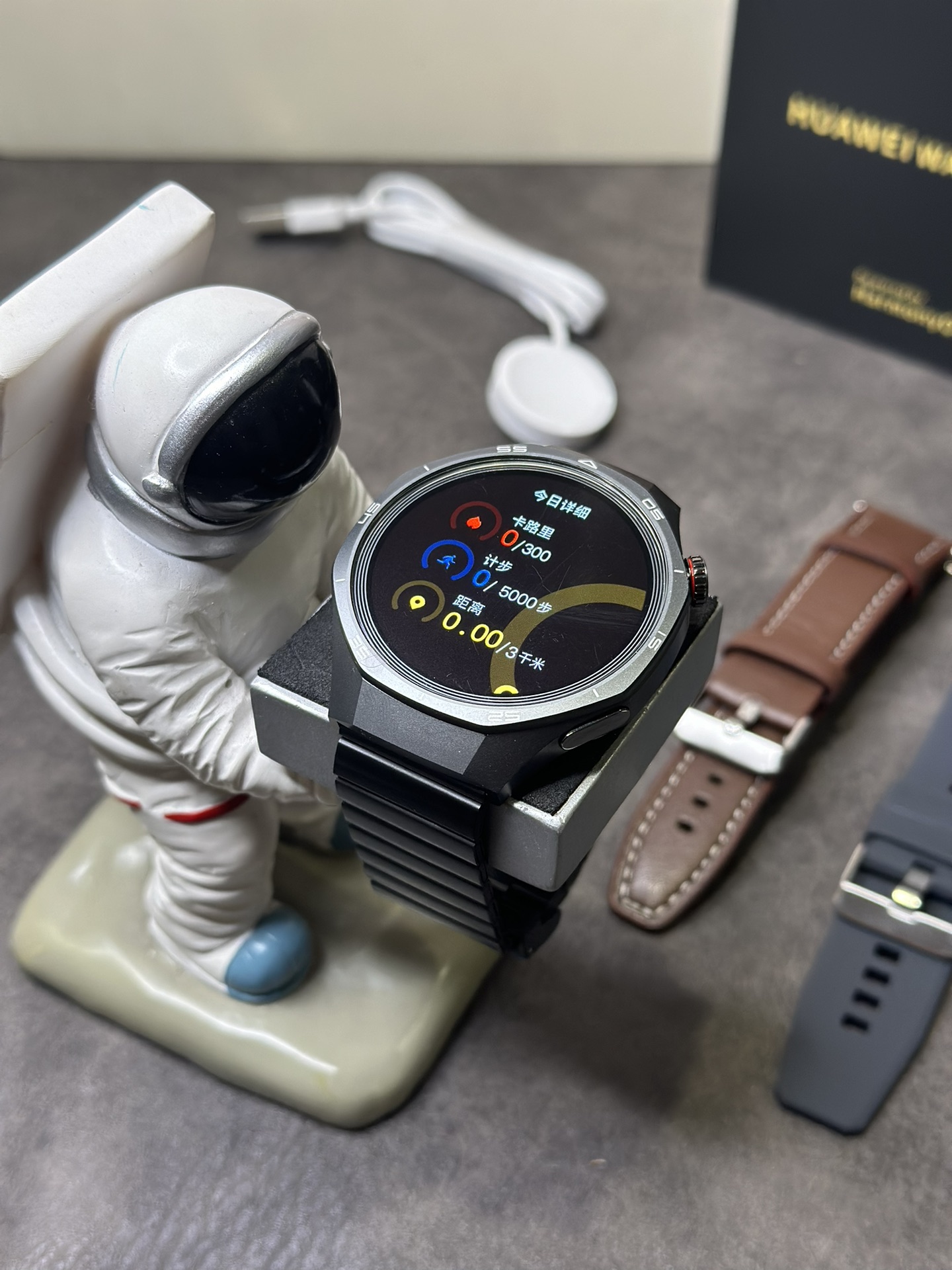 出厂批发价💰190 华为HUAWEI GT5 Pro 智能手表 黑色 原装Oled屏 正确表盘刻度运动圈 侧面红圈按钮跟原装一样 上手看不出假 升级钛合金边框 质感非常高 日常佩戴不怕磕碰 46mm钛合金边框 重量质感跟正品完全一样 市面没有任何同行能够做到如此完全1:1复刻 各位可以尽情对比 欢迎打脸 这就是原版开发的底气 功能全面升级‼️ 支持本地相册 地图导航 电子书 连接蓝牙耳机等 本地音乐 录音笔 手电筒 内置小游戏等功能 系统自带175种运动模式 准确记录各种运动数据 IP68级防水设计 再次刷新标准 生活防水无压力 真实心率检测 真实血氧检测 目前最稳定的智能手表 支持息屏显示 屏幕常亮 床头灯等功能 带支付宝离线支付 NFC门禁 语音助手等50种功能 正品该有的我们也都有 给你正品般享受体验 自家开发app 可自定表盘壁纸 查看各种测量数据 绑定app后可接受微信消息 查看信息内容等 软件内置500+种表盘 长期更新表盘 全部免费使用 目前功能最全的一款表 建议各位到手慢慢挖掘‼️ 手表标配三条表带 手表无线充 说明书 等等 售后保修三个月 外观不磨损/屏幕膜不撕过可退换‼️