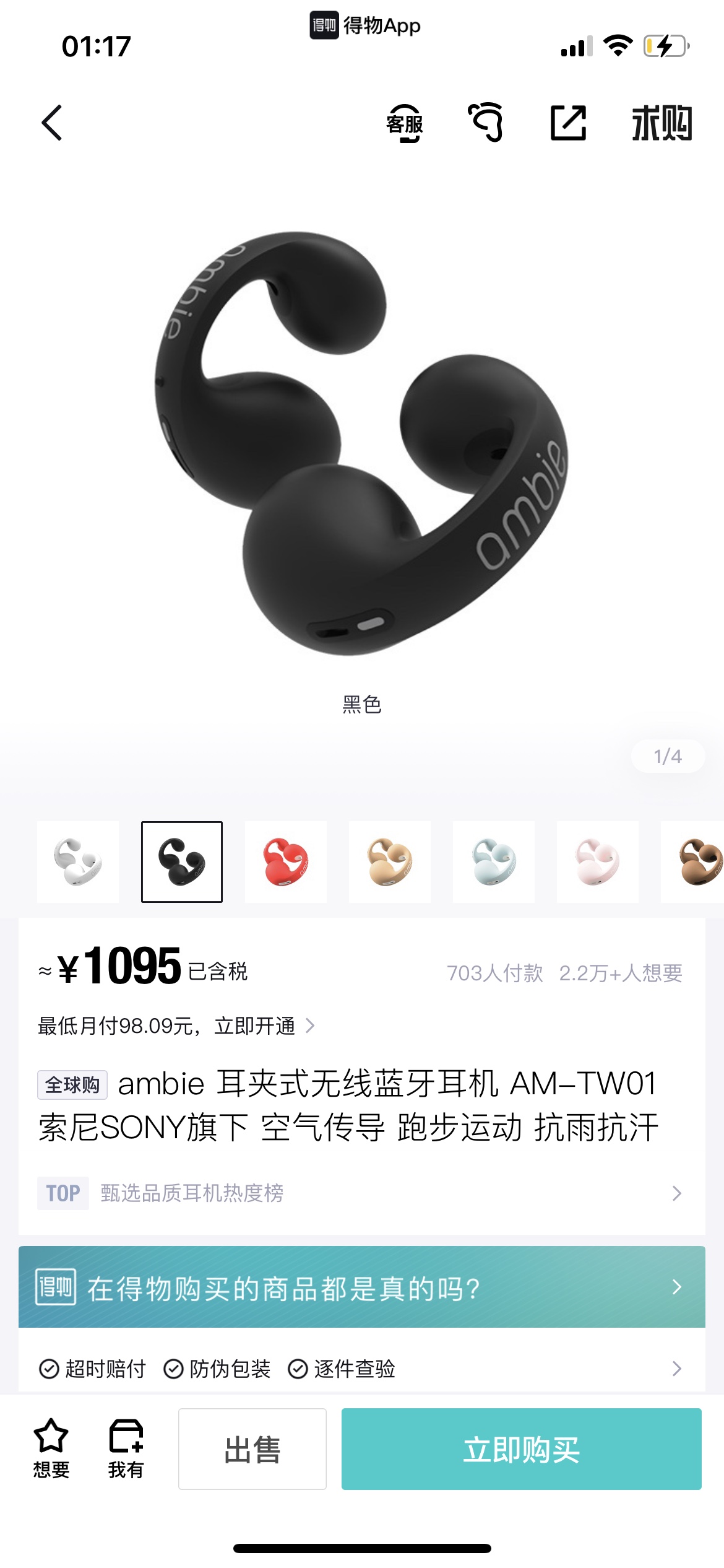 ambie 骨传导耳机 黑色款 得物同步在售‼️