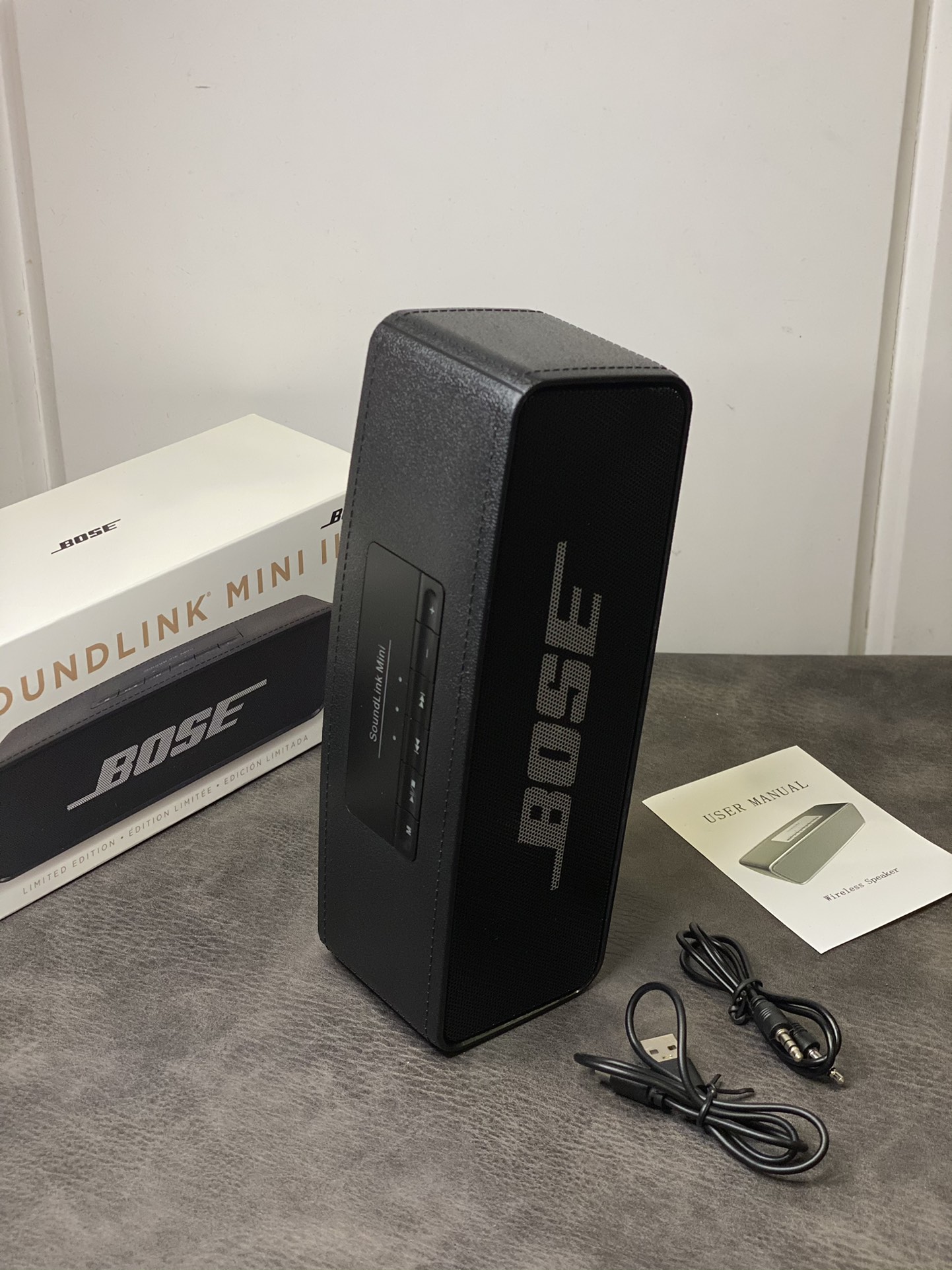 放店💰80 利润自加 博士Bose SoundLink Mini 迷你二代音响 音质无需多介绍 资深老牌调教 绝对钢炮! 支持两台串联 左右声道享受低音人声环绕音质 多功能连接方式 可连接手机 电脑等设备 5.0蓝牙高速连接 10m范围内自动连接 带控制面板 可切换 暂停歌曲 音量调节等功能 市面独家放货 黑银两个颜色供应 售后保修三个月 外观不磨损可以退换