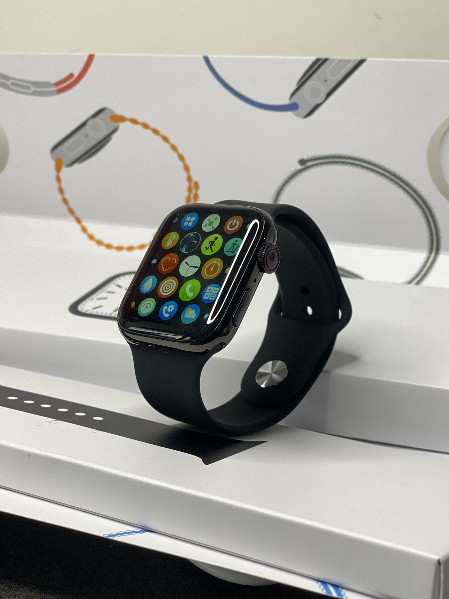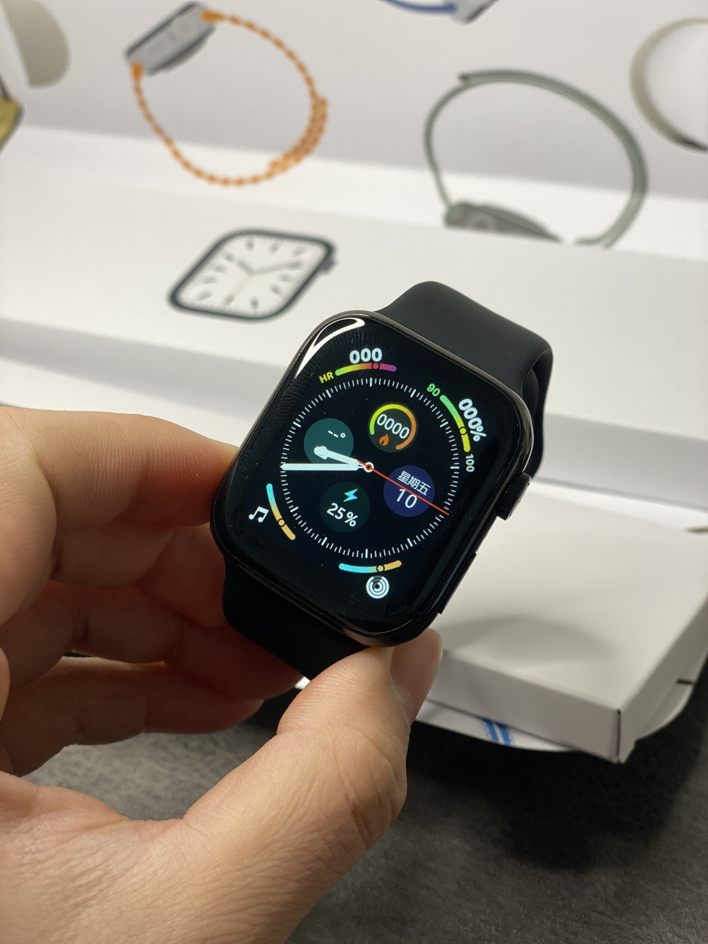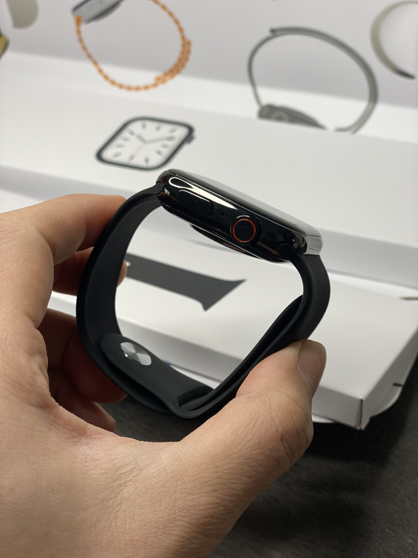 放店💰170 市面200 苹果Apple Watch Series 7代手表 手表外观及包装全网独家 序列号官网可查 支持离线收款 支付宝离线支付 不带手机也能付款 高清显示屏 45mm表盘 1.72屏幕 侧面单孔扬声器 新增功能 定位查找 距离测试 密码锁 拨打接听电话 听音乐 室内室外运动 呼吸训练 音乐控制 下载app连接同步手机电话簿、拨号、信息、QQ/微信通知、心率、测血压、血氧、睡眠、秒表、压力、梅脱、计算器、多种语言设置等 配件清单:手表主机-原配表带-赠送表带-无线充充电器-说明书-专柜同步包装 售后保修三个月 屏幕膜不撕外观没磨损可以退换‼️