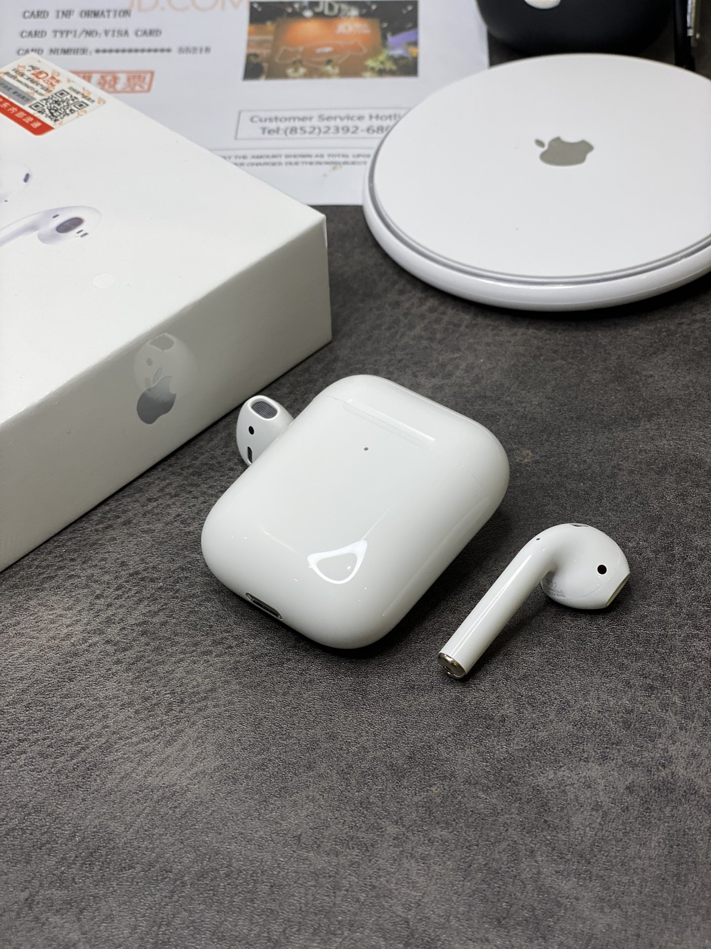 本地放💰120 苹果AirPods二代京东正版 升级不跳电 49g原装外壳 反磁金属合页 五码合一 本机可查序列号 里外一致序列号 默认贴京东标 小票两处防伪码全部可查 原装49外壳 反磁开盖 手感接近正品 络达1536芯片 1.7石墨钛喇叭 真实电量不跳电 超长续航 单次听歌可达3-4小时 配合充电仓用一天无压力 音质绝对小钢炮! 独家配送苹果无线充 保护壳 京东发票 专用打包盒! 支持退换 外观不磨损可退换 保修三个月!
