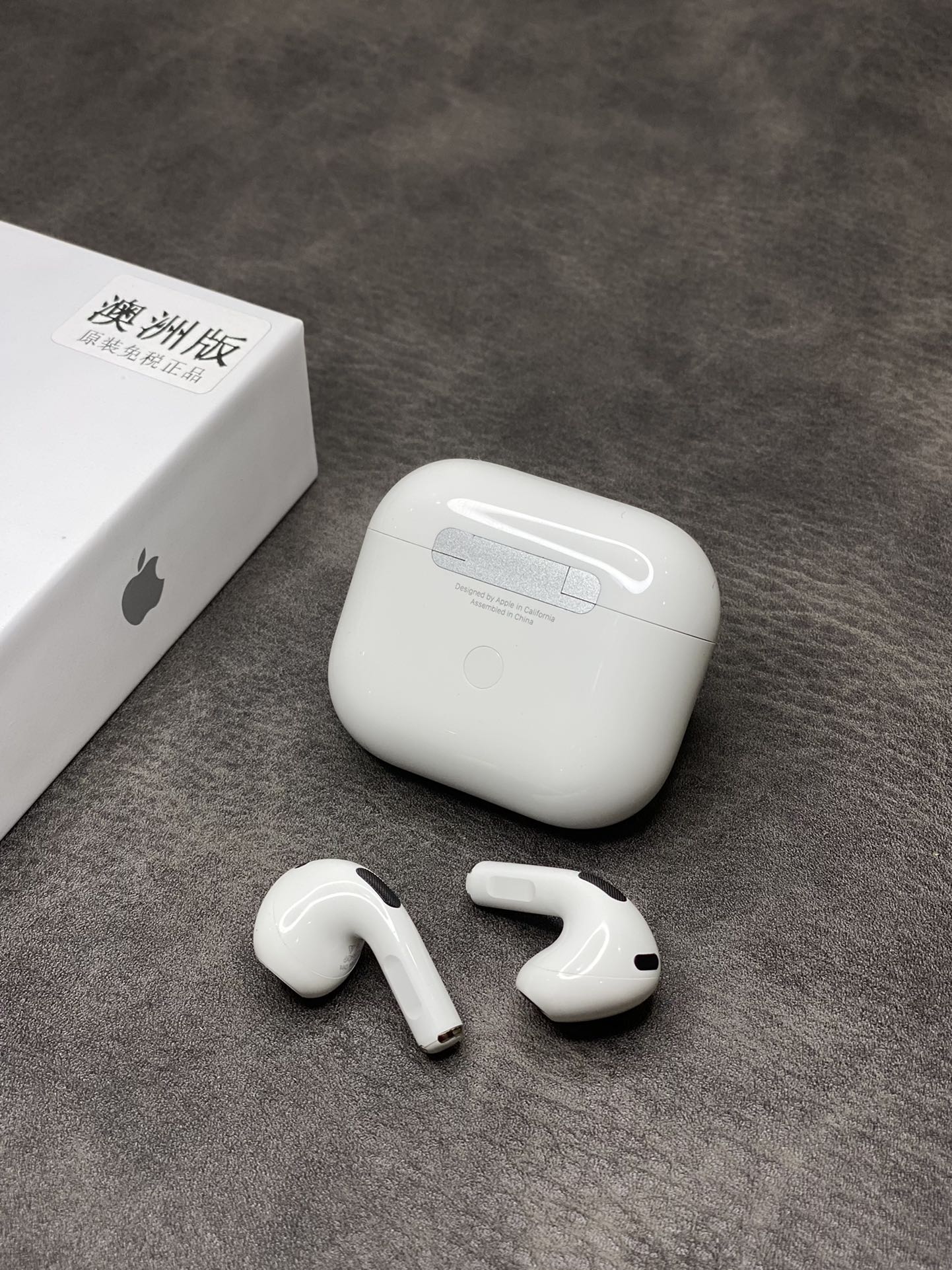 本地放💰100 新款‼️ AirPods3 苹果耳机 ln澳洲版 原厂壳料 灰白指示灯 外观跟正品一样看不出假 支持空间音频 弹窗修改名字定位等功能 机身带序列号 三码对应 官网可以查验证! 智能自适应EQ音效 音质绝对小钢炮! 升级纽扣电池 听歌可达8小时左右 超长续航 真实电量不跳电 秒杀市面各种砸价版本! 外包装同步正品 带原装撕拉封口标签 赠送发货飞机盒 专柜小票 保护壳等 售后保修三个月 耳机外观不磨损支持退换‼️