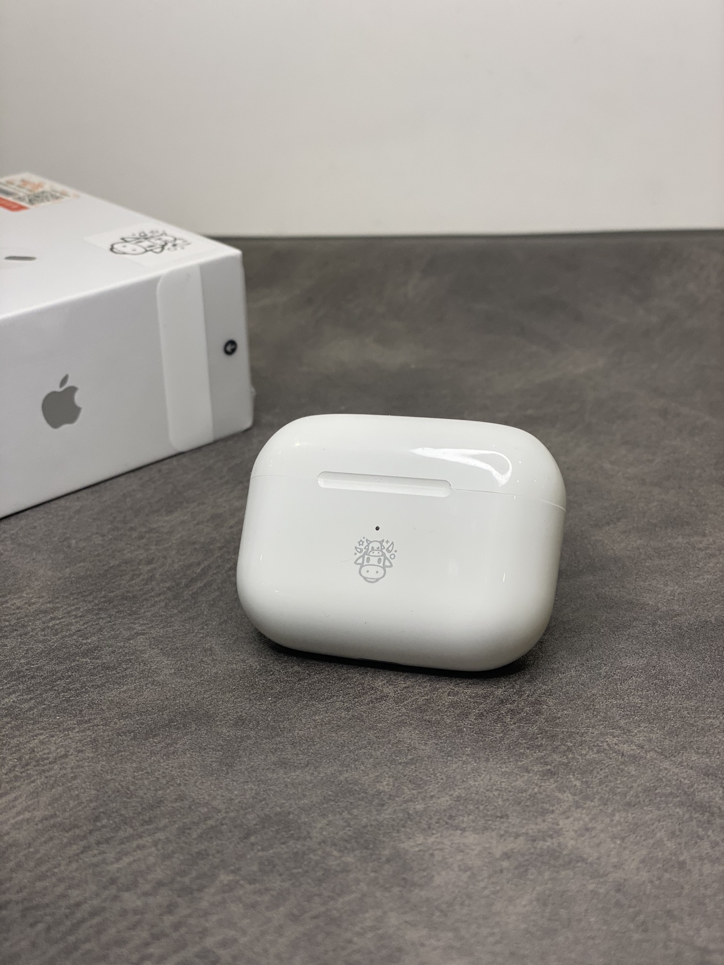 本地放💰100 利润自己加 牛年限定🐮苹果AirPodsPro三代耳机 官方限量发售版本 充电仓激光雕刻牛头logo 开盖自动弹窗连接 真实电量显示 不跳电!!! 带空间音频功能 通透降噪效果可自由切换! 序列号官网可查 机身带序列号 全部对应 原厂黑网罩+开孔降噪网 重量同步正品56g! 音质绝对小钢炮 秒杀千元内级别蓝牙耳机 可以自定义改名跟定位 带IPX4防水功能! 按压切歌操作 三真电量显示 ACC无损解码! 配套四个原装带网耳塞 配件同步正品! 耳机充满可使用4-5小时,电池盒待机72小时! 赠送保护壳 京东防伪标 京东发票 发货纸箱等全套配件!