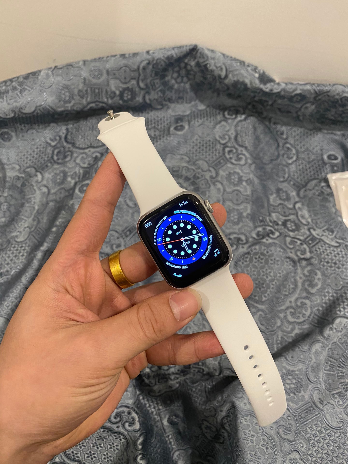 本地现货💰120 苹果iWatch5+智能手表 升级全屏版 升级全面屏 屏占比达95% 接近原装! 外表跟原装同尺寸 表带通用 可自由更换! 支持支付宝付款 可测体温,心率,通话,音乐,拍照,计步等等24种类功能 系统支持多国语言 可供外贸出口! 配件清单# 表盘+硅胶表带+说明书+磁吸充电线 售后保修三个月 外观不磨损 屏幕保护膜不撕开可退换!