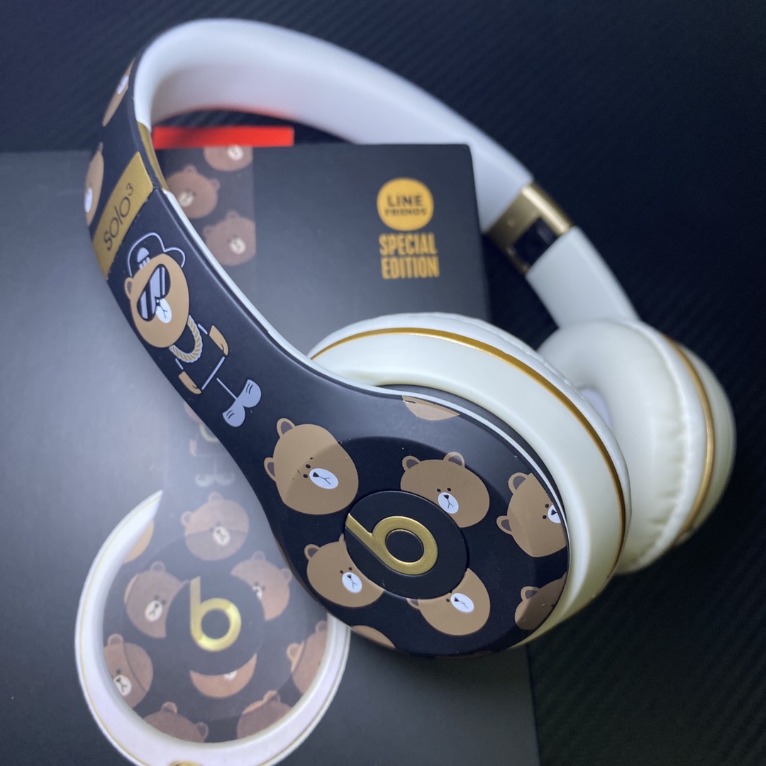 本地批💰70 Beats Solo3 布朗熊 90年限量款 独特的喷绘设计 使图案更清晰 完美适配苹果手机 安卓手机通用!音质也是浓浓的beats渲染 官网售价2000➕ 让喜欢戴耳机的消费者望而却步,先行版虽然没有正式版配置丰富,但是性价比超高,然而这个系列的耳机🎧音质都是一流的!售出0⃣售后!大家可以毫无压力的自留,送人 都不丢面!
