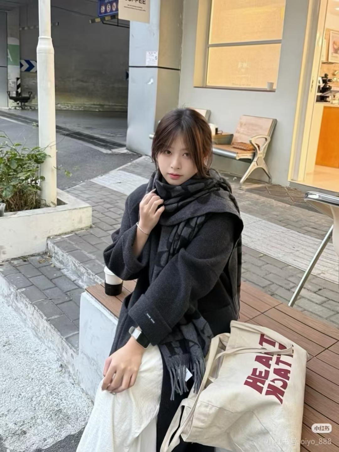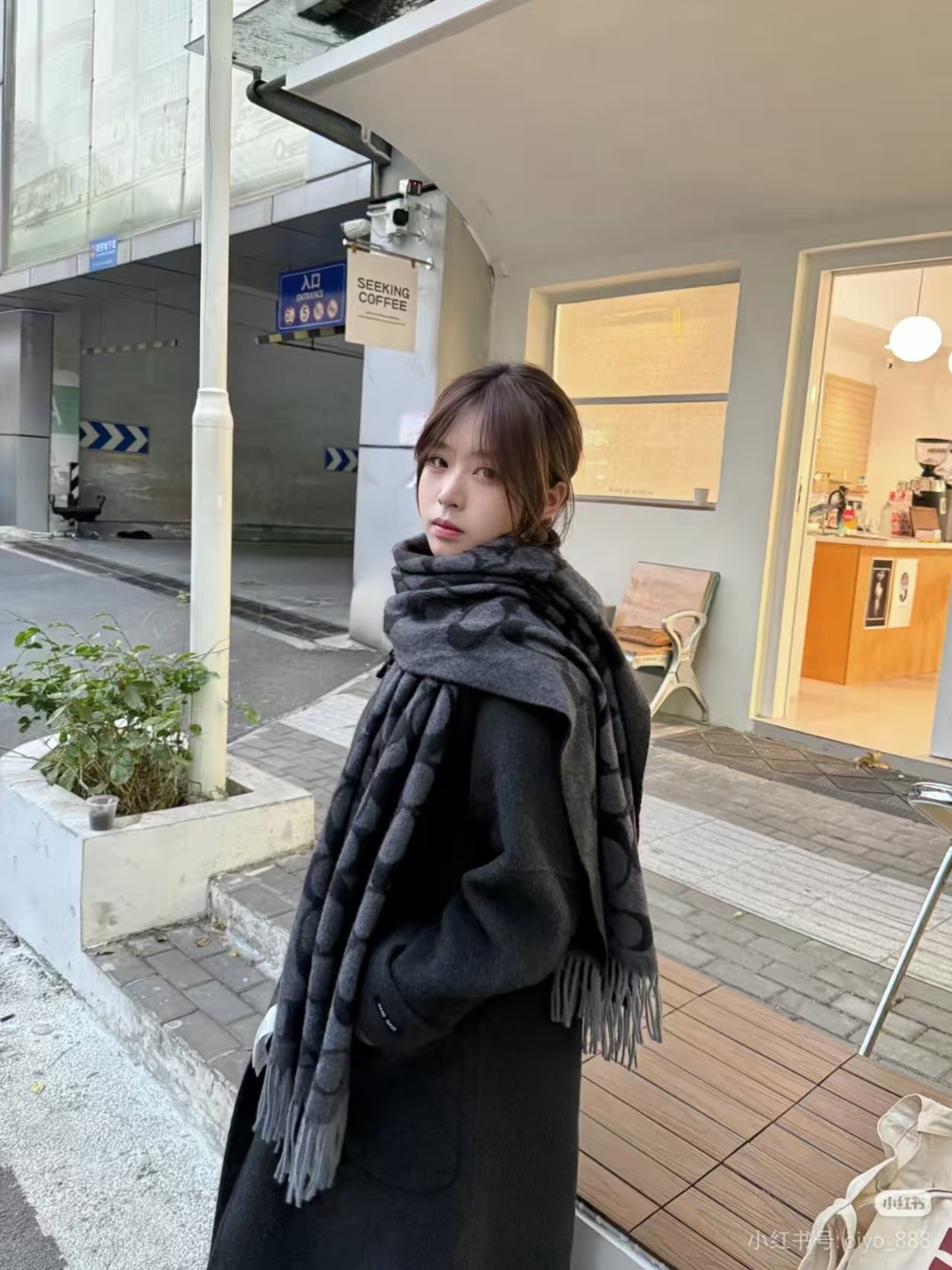 COACH/蔻驰 羊绒羊毛混纺围巾 上身参考