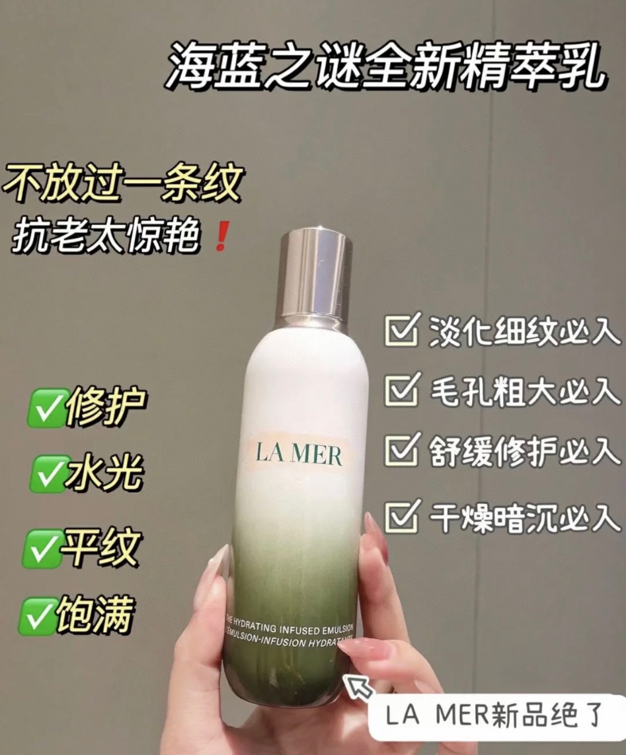 💰150 海蓝之谜精萃乳液] 质地轻盈 尤其适合夏天用 快速渗透不粘腻 妥妥的油敏肌亲妈 每次用完脸巨水润Q弹 即使熬夜了皮肤看起来也亮亮的 完美满足清爽+修护维稳+保湿抗初老的需求