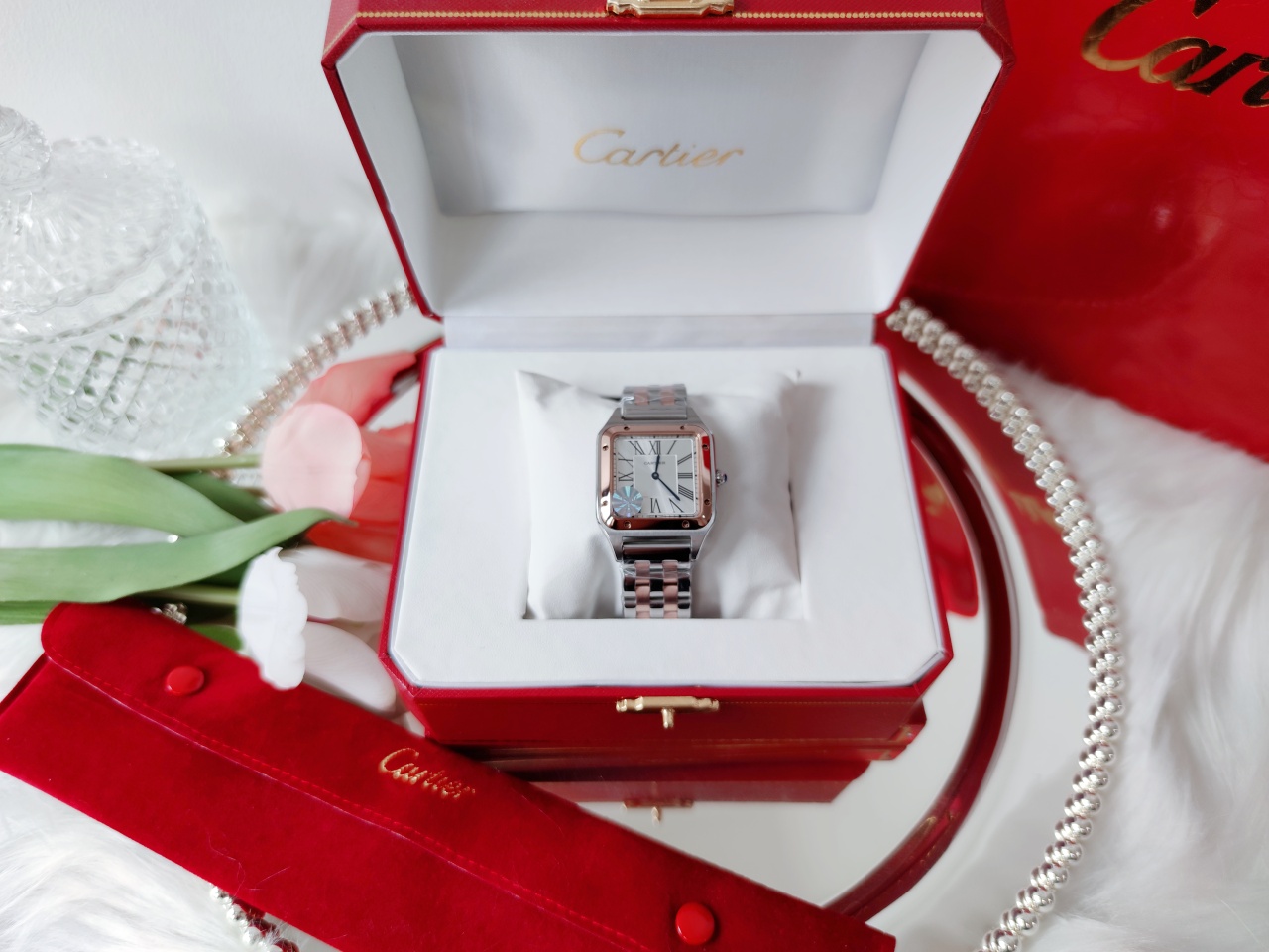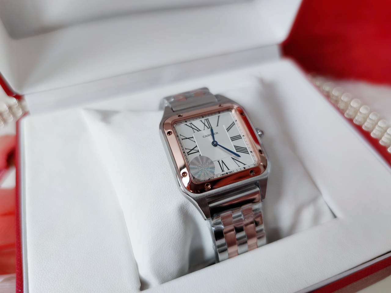 💰330 实拍 卡地亚山度士Santos-Dumont腕表,全新的最新,最薄,最轻的Santos-Dumont系列的设计和Santos家族一脉相承,简单大气!采用进口石英机芯,零误差,采用高穿透的水晶玻璃,阳光射线的罗马表盘,采用精致钢蓝针,搭配蓝宝石表冠。特大号:48*36mm 大号:43.5*31.4mm 小号:38*27.5mm 厚度7.3mm