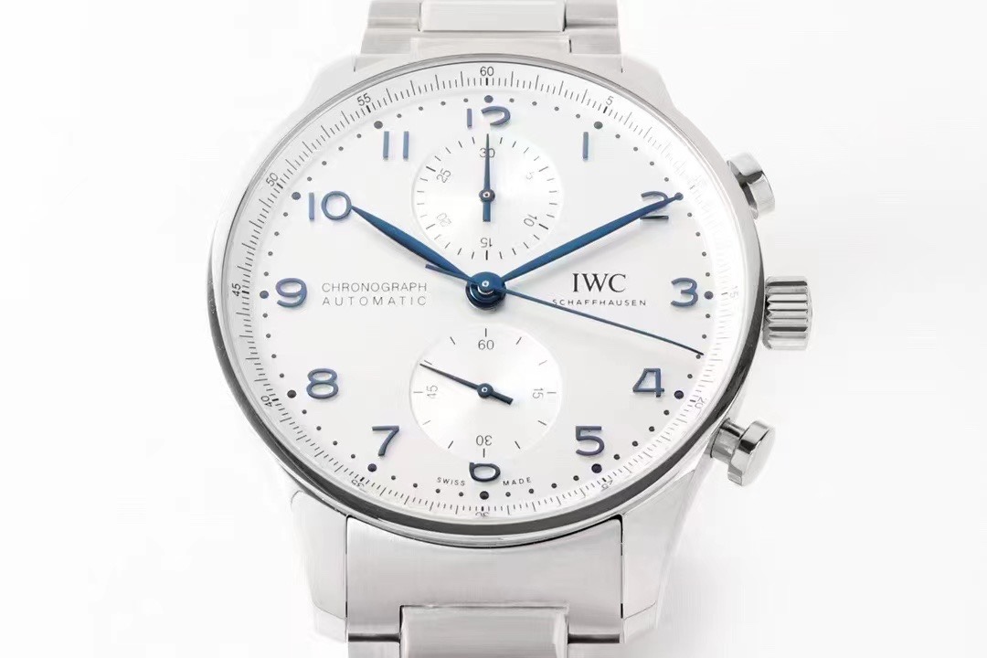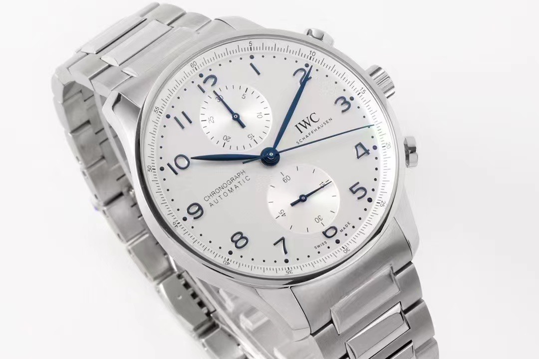 ZF永不落幕的经典——万国葡萄牙计时系列第一款精钢表链IW371617葡计钢带款 【表壳】41MM表径,经过抛光与拉丝工艺修饰,每个角度都尽显阳刚之气,坚固耐用。 【表盘】银色表盘搭配蓝钢指针和阿拉伯数字时标,尽显优雅风范。12个阿拉伯数字均通过独立开模,打磨抛光,搭配淬火烧钢蓝针,加上标志性的上下眼小表盘,整个盘面简洁优雅。 【机芯】ZF自研万国9355型计时机芯,采用经典导柱轮设计,高效双向棘爪上链系统提供46小时动力储备。后盖透底设计,让精美的机芯一览无遗。 【表带】精钢表链两侧拉丝工艺处理,中间的链节则采用了抛光工艺处理;表链搭配了蝴蝶式折叠表扣。精钢表链更适合日常佩戴,实用性强,能抵御潮湿环境、汗水以及盐水等侵蚀。 ZF经典永不眠,出品即是精品!