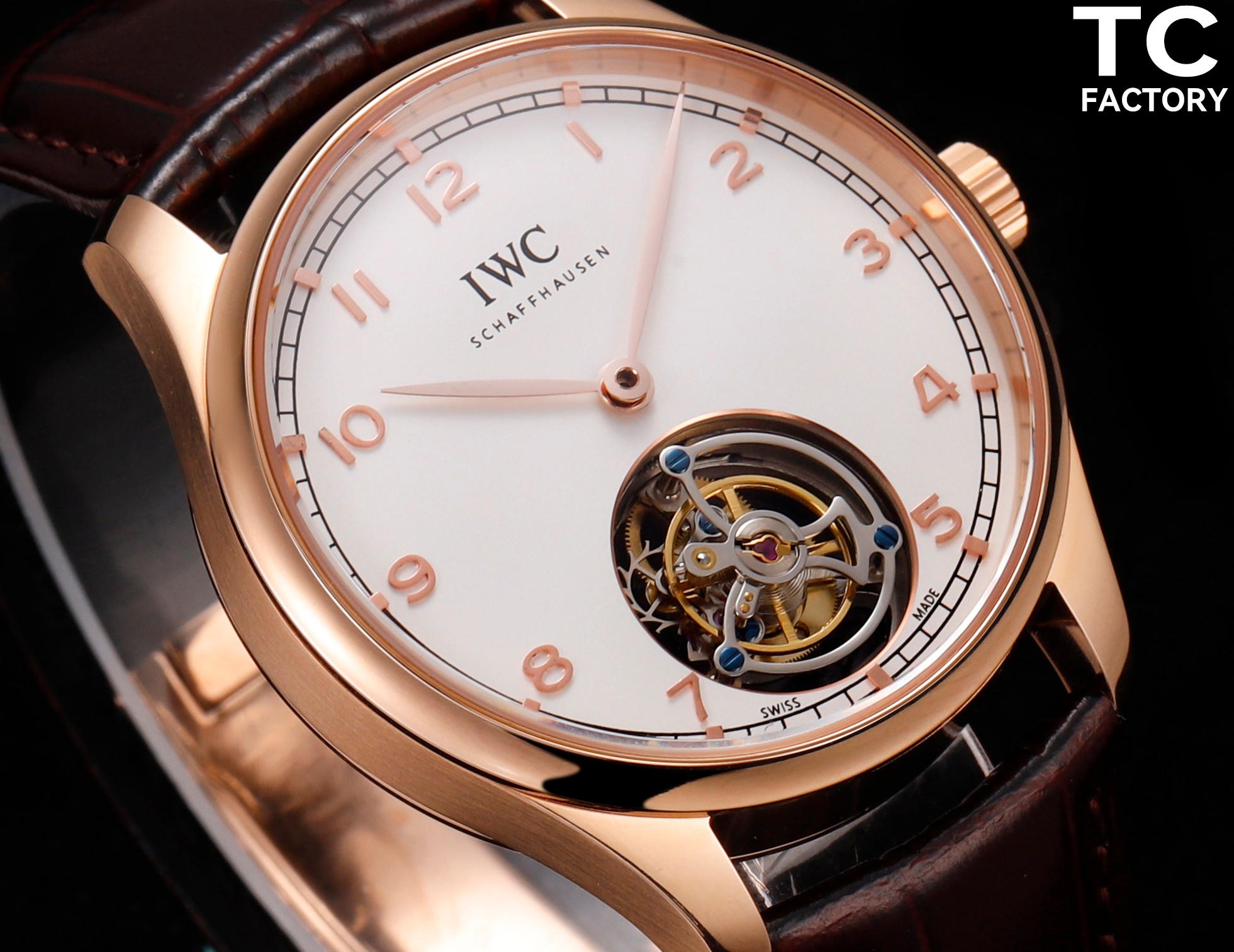 TC Factory 洲际13周年庆 万国 葡萄牙系列 真陀飞轮腕表!! IWCPORTUGIESER HAND-WOUND TOURBILLON 恒定动力手动上链 陀飞轮腕表 真正的 陀飞轮!!! 将葡萄牙系列历久弥新的现代设计与6点钟位置的飞行分钟陀飞轮融为一体 金镶贴阿拉伯数字搭配金质叶形指针,与镀银表盘和谐呼应 1⃣️独家开发81905机芯,动力储存长达72小时,还原正品三大功能 2⃣️表壳:根据原装一比一描绘设计。还原正品三件套:不管是从表壳正面与反面壳型的侧面与弧形拉丝工艺打磨均完美同步原装。直径为42mm.厚度11毫米。 3⃣️表镜:蓝宝石拱形表镜。 4⃣️表针:工厂不惜成本,从设计到开模.式样.检验多次才达到与原装一致立体表针。 5⃣️表带:采用意大利牛皮鳄鱼纹表带,手工缝线,细节到位,搭配IWC原装正品折叠表扣,扣面字体清晰,还原正品细品