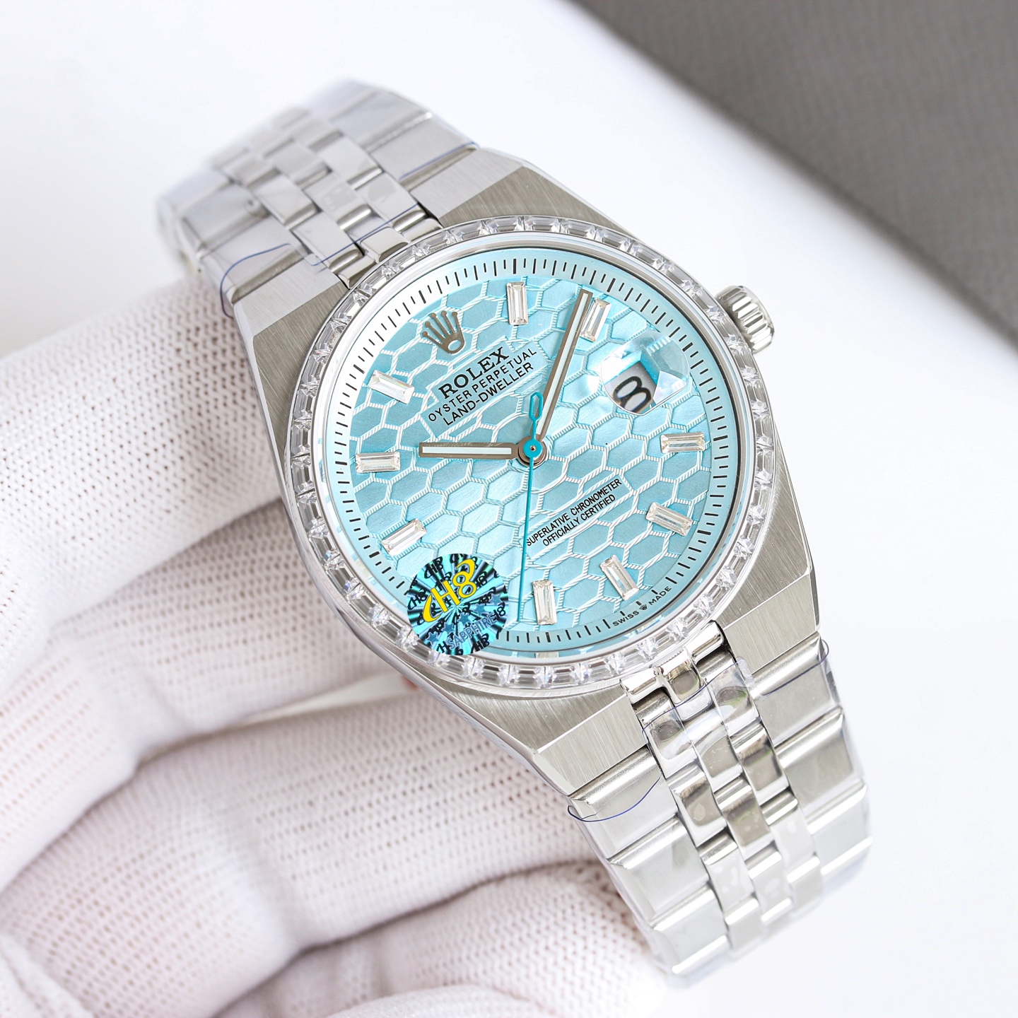 光壳1300钻壳1400 劳力士-陆使型,V2 赛车版 40mm,内置9015改一体7315机芯。 劳力士全新 Land-Dweller 陆使型于 2025 年推出,采用了一体式表链设计,这种设计灵感源自 1969 年Oysterquartz Datejust 腕表,以及 1974 年面世的日志型腕表,表壳与表链之间呈现出无缝连接的流畅线条。 表盘设计灵感来自大自然,以蜂巢纹理呈现经典布局,40/36mm毫米的尺寸,白色、冰蓝色表盘。腕表厚度仅 9.7毫米,这使得其在劳力士的运动表款中显得尤为纤薄。 搭载全新 9015一体机芯改7135 自动上链机芯!