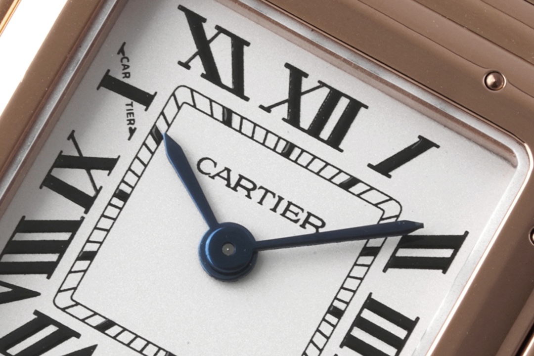 BV最新升级版本【小号22X30MM】 卡地亚Panthère de Cartier猎豹腕表使用方形双层表壳看起来更加立体大方,更加突显出腕表的优雅与经典。白色表盘上,卡地亚式时标设计更为腕表注入一份品牌的魅力。蓝色中央时分针宛若在两只随时间而舞动的精灵,为整款腕表再填华彩。 与传统卡地亚腕表一样,表冠上镶嵌有一颗具有品牌代表性的蓝宝石,向观表者展现高级钟表珠宝品牌卡地亚的独有魅力。表冠采用防滑纹理设计,方便对腕表的调试。两边的表冠护桥也为腕表增添了一份安全防护。 相比背透设计,密底工艺可以保障腕表机芯安全性。18K黄金表盖上,镌刻卡地亚英文标识的下方,WATER RESISTANT 更是对腕表防水性能的保障。灵活自如的链节表链是腕表另一大亮点,处处都散发着曜目而饱满的光芒,从上到下都充满着独特的优雅奢华气质。 1⃣️尺寸:22X30MM、厚度6MM 2⃣️表壳:316精钢 3⃣️表盘:经典镀银白色 4⃣️表针:烧制钢蓝 5⃣️玻璃:蓝宝石水晶 6⃣️表带:316精钢 7⃣️表冠:镶嵌蓝色尖晶石/钻石 8⃣️机芯:瑞士石英机芯