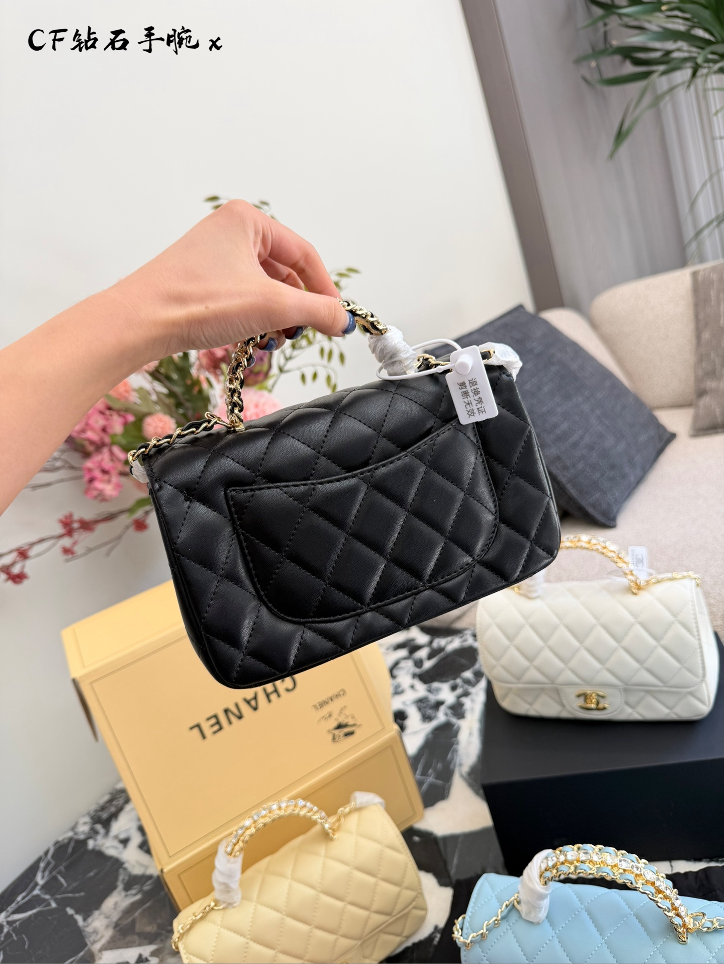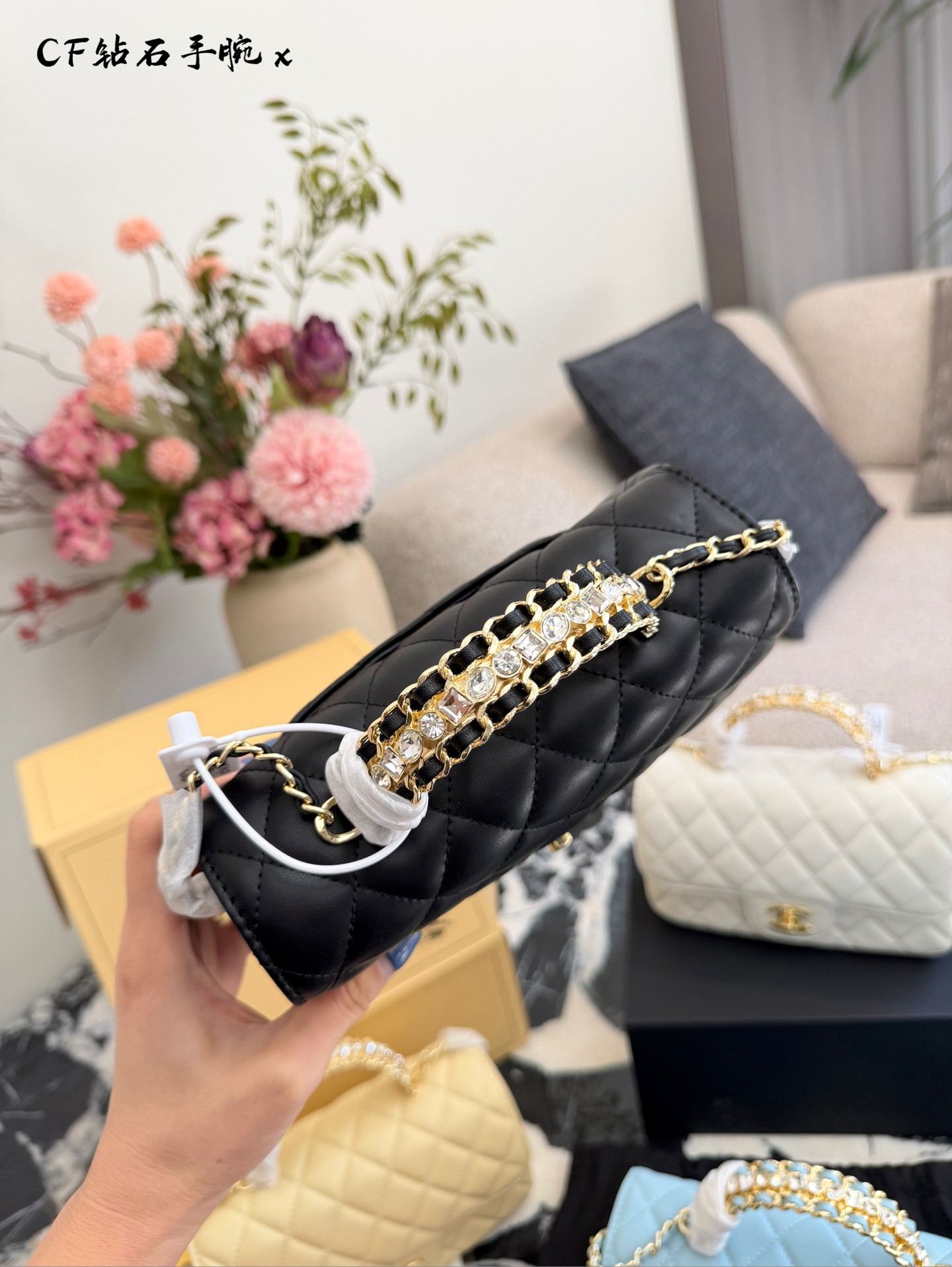 💰280 镶满水钻💎的Chanel尊的美疯了 香奶奶你别太会 居然出了镶满水钻的包包 这谁能不爱啊 淡金色五金+水钻巨显贵好嘛? 20cm双盒