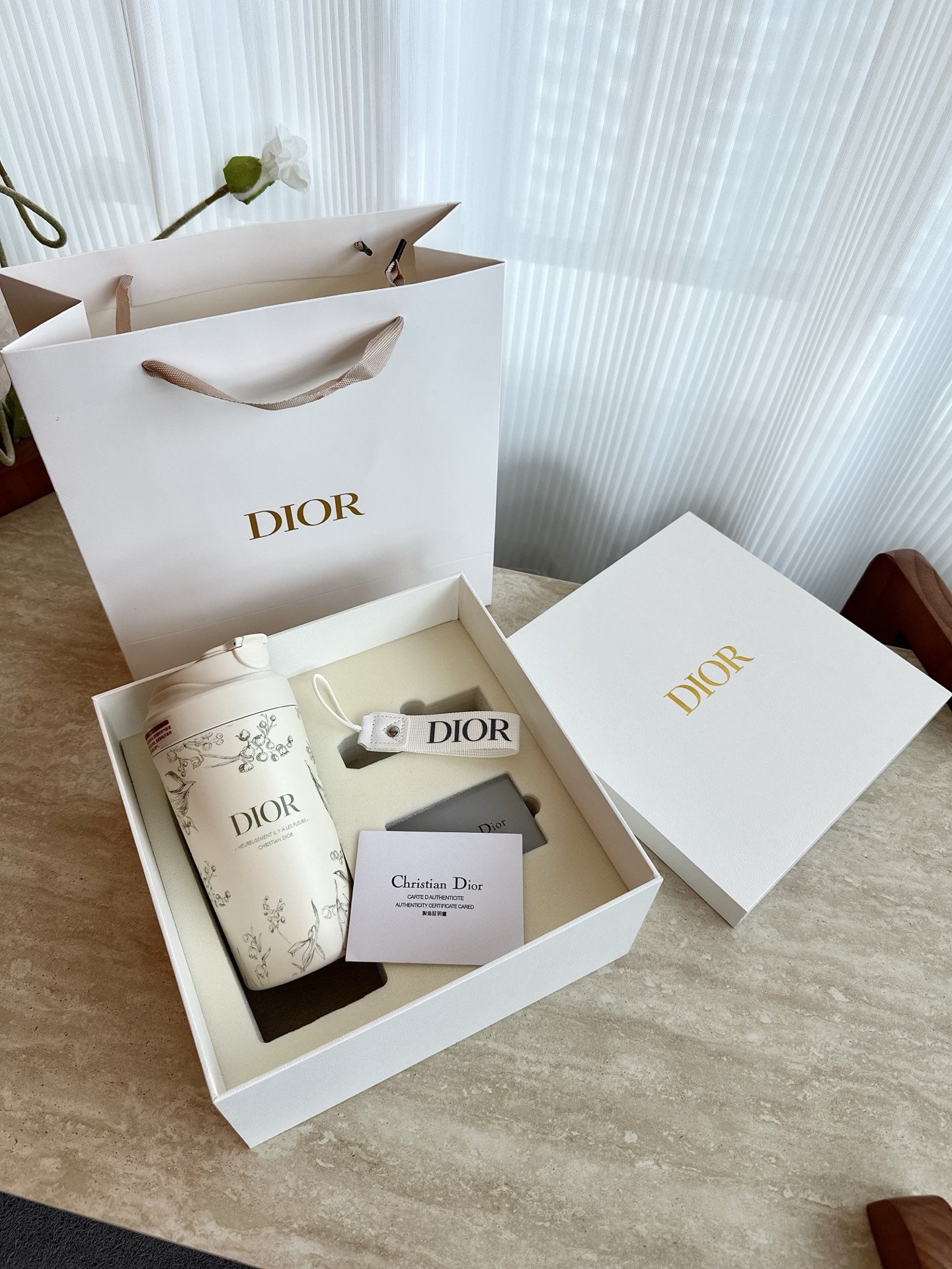 DIOR 迪奥 铃兰花陶瓷保温杯 一眼沉沦的高颜值铃兰杯子,高级质感,氛围拉满,茶白色很温柔,图案精致好看,颜值与实用并存! 不光颜值高,保温效果也嘎嘎好,真陶瓷内胆,冲泡无异味耐腐蚀,抗酸碱,可以保温12个小时! 加宽手提带设计,带出门可以拎着,一年四季都适用!每一滴水的温度,都蕴藏着铃兰花语的秘密,送礼自用都很推荐哦! 全套礼盒🎁 送自己 送家人 送朋友佳选,浮雕花朵图案超精致!