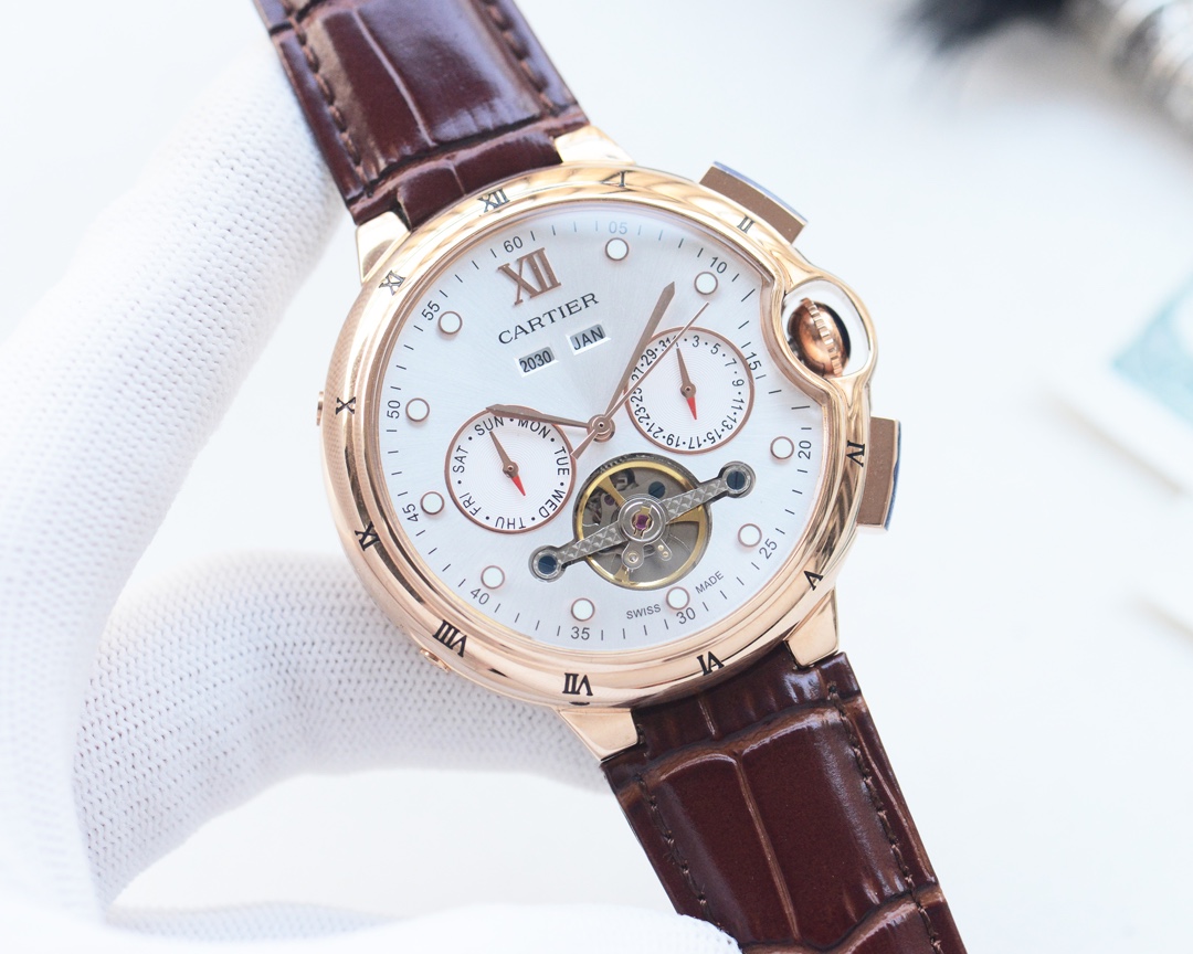 💰450 品牌:卡地亚-CARTIER🏅🏅 类型:男士腕表🎉🎉 壳套:顶级版316精钢L 表带:进口小牛皮表带 机芯:全自动进口机械机芯⚙️ 镜面:矿物质防刮镜面玻璃 尺寸:直径42mm厚12mm 🍷精致传承真实效果,品质保证! ‼️优雅格调瞬间提摄男士魅力,更是品位与生活尊贵象征!