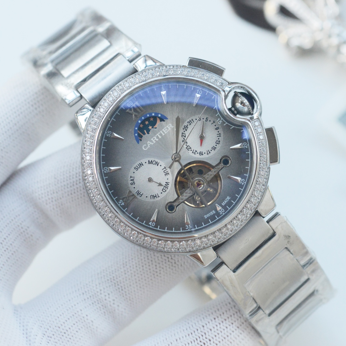 白壳650,金壳670,钢带➕30 品牌:卡地亚-CARTIER🏅🏅 类型:男士腕表🎉🎉 壳套:顶级版316精钢L 表带:进口小牛皮表带/316L精钢表带 机芯:全自动进口机械机芯⚙️ 镜面:矿物质防刮镜面玻璃 尺寸:直径44mm厚12mm 🍷精致传承真实效果,品质保证! ‼️优雅格调瞬间提摄男士魅力,更是品位与生活尊贵象征!