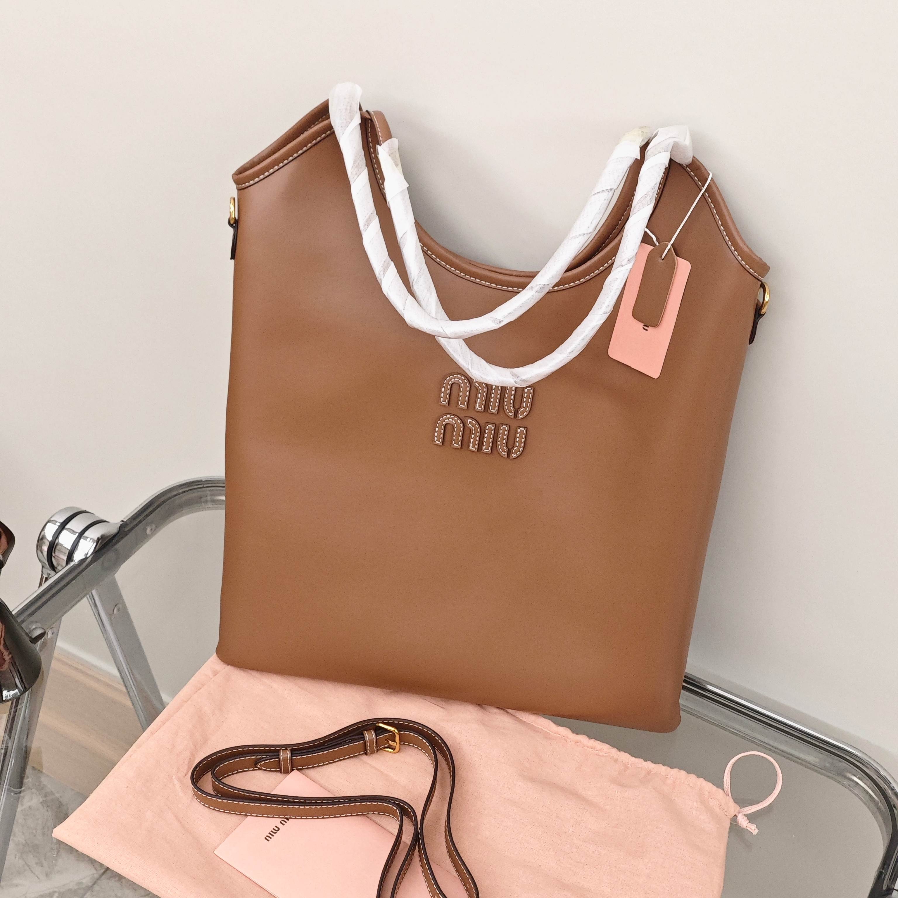 🛒缪缪hobo托特腋下包¥250 尺寸:宽35×包身高40cm 简介:开放式口袋+内置拉链口袋,内部空间宽敞,可放下超大屏ipad等通勤办公用品,搭配长肩带,可腋下背/可斜挎背。