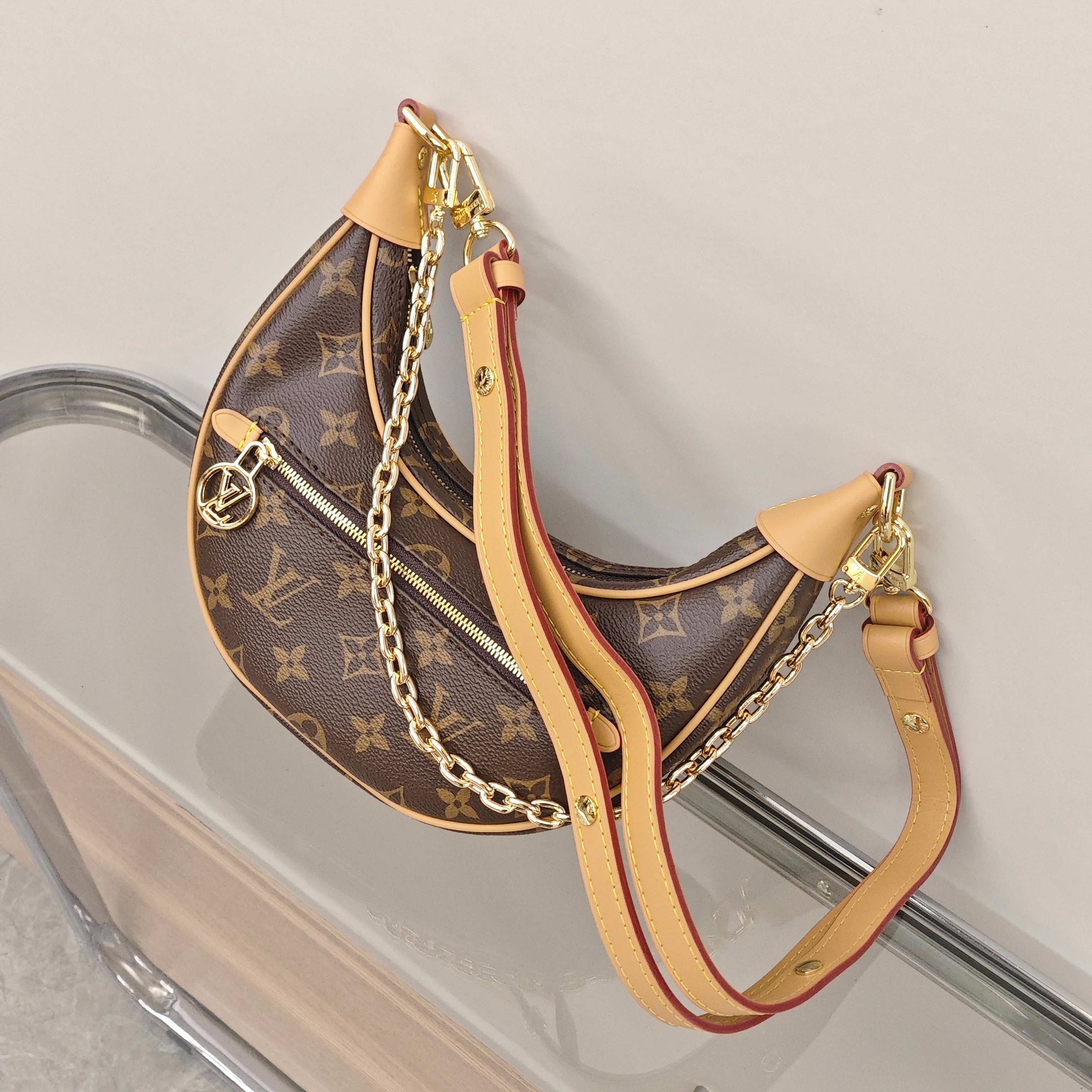 🛒Lv Loop月亮豌豆包¥270 尺寸:23×13×6cm 简介:拉链式开合,内部空间可放下手机充电宝等日常随身物品,背带可调节长短,均可拆卸,满足各种搭配。