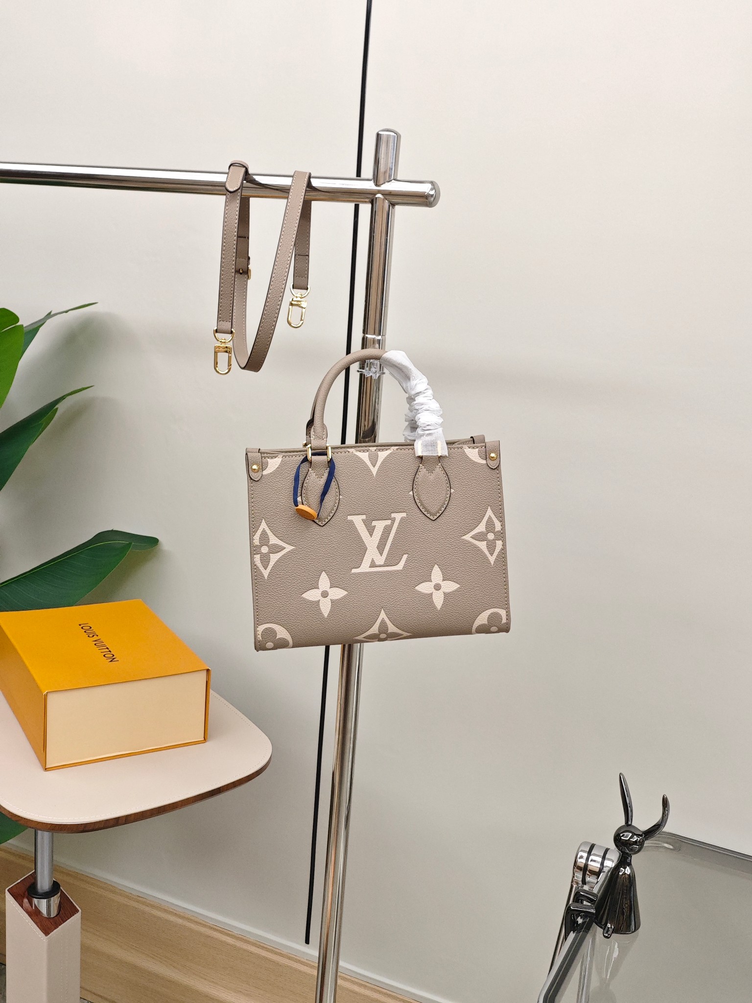 🛒Lv onthego托特包 ¥310 尺寸:25×19×11.5cm 简介:开放式开合,内置拉链口袋,内部空间宽敞,可放下手机充电宝平板ipad等日常随身物品,搭配可拆卸长肩带,可手提/可斜挎背。