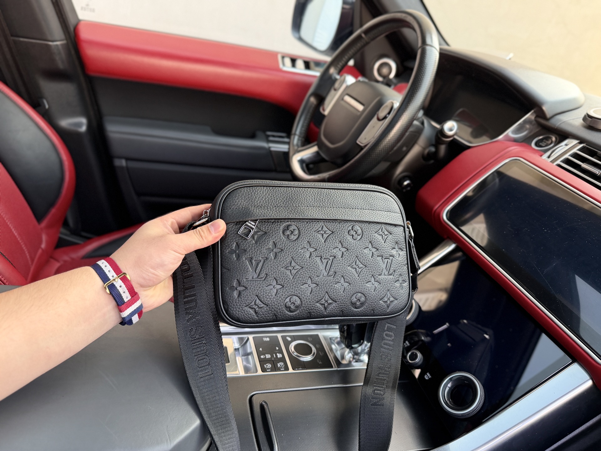 💰260 📷高端货‼️ 新款 “ LOUIS VUITTON ”lv单肩包💼 路易威登单肩包牛皮斜挎包 可调节肩带磁吸扣开合 粒面软皮 头层牛皮 单肩斜挎包 男款 黑色 超高清五金logo标志、顺滑拉链、油边超平滑、做工精致每个细节到位!男人必备款。规格:24x17x5cm 配礼盒🎁