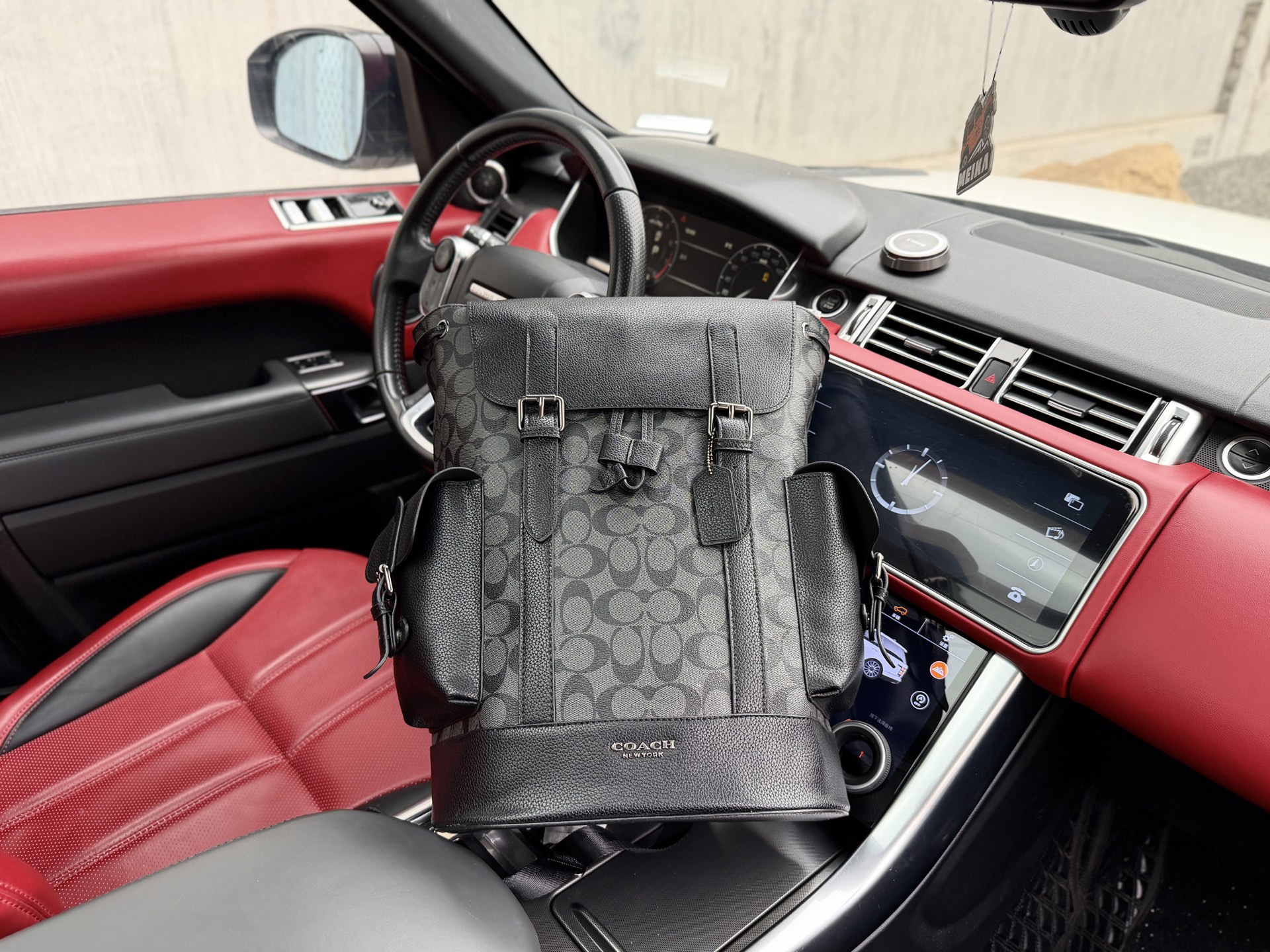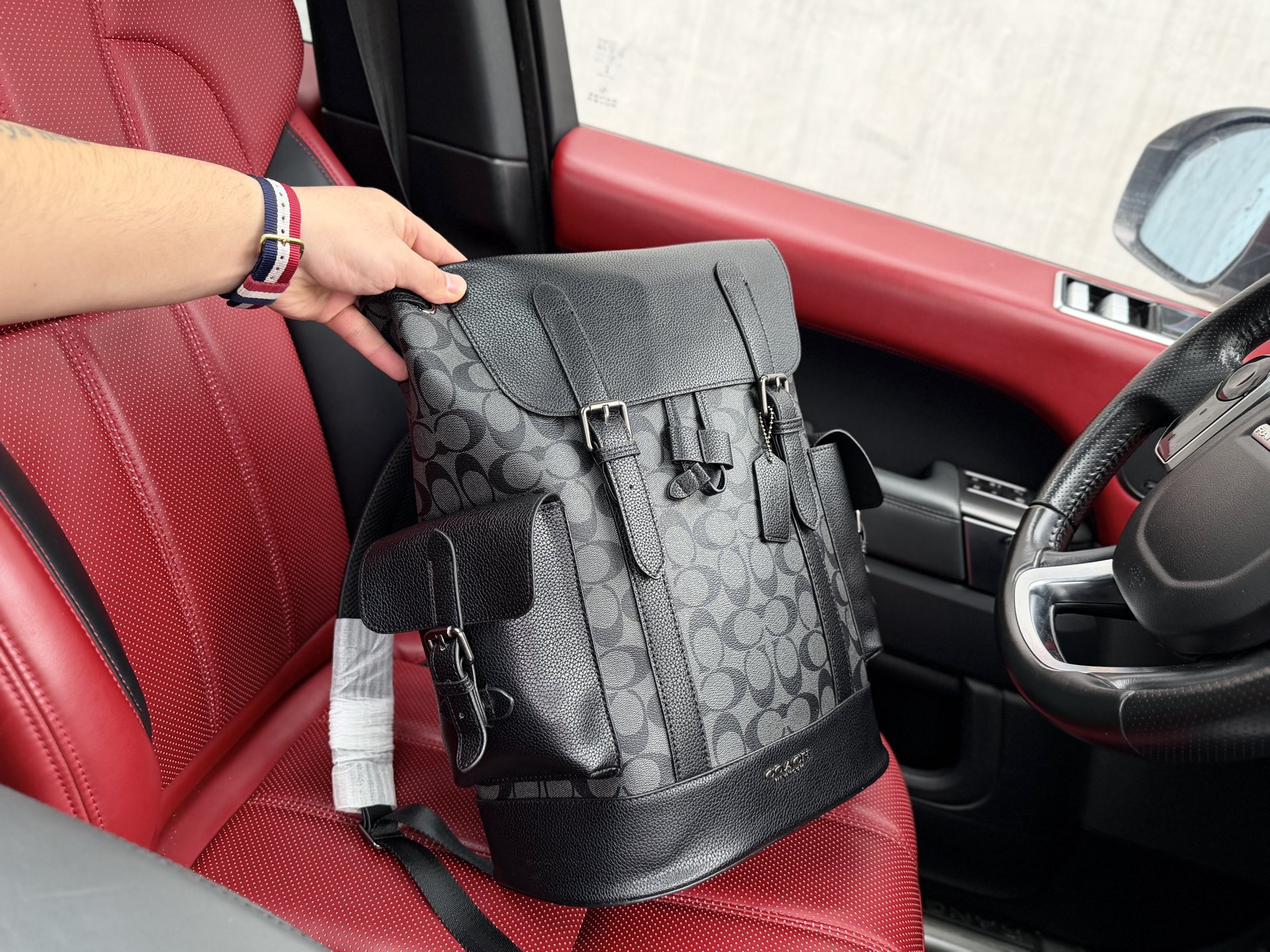 💰280 📷高端货‼️ 新款 “ COACH ”蔻驰双肩包 💼 coach蔻驰双肩包 COACH蔻驰 Hudson 30 经典老花印花翻盖抽绳开合内部拉链口袋 天然鹅卵石皮革拼帆布 背包双肩包 大号 男款 黑色 黄色 炭黑色拼棕色 内设电脑隔层 拉链暗袋 高清五金logo标志、专用里内里。顺滑拉链、油边平滑、做工精致每个细节到位!潮男必备款 尺寸:28x40x13cm