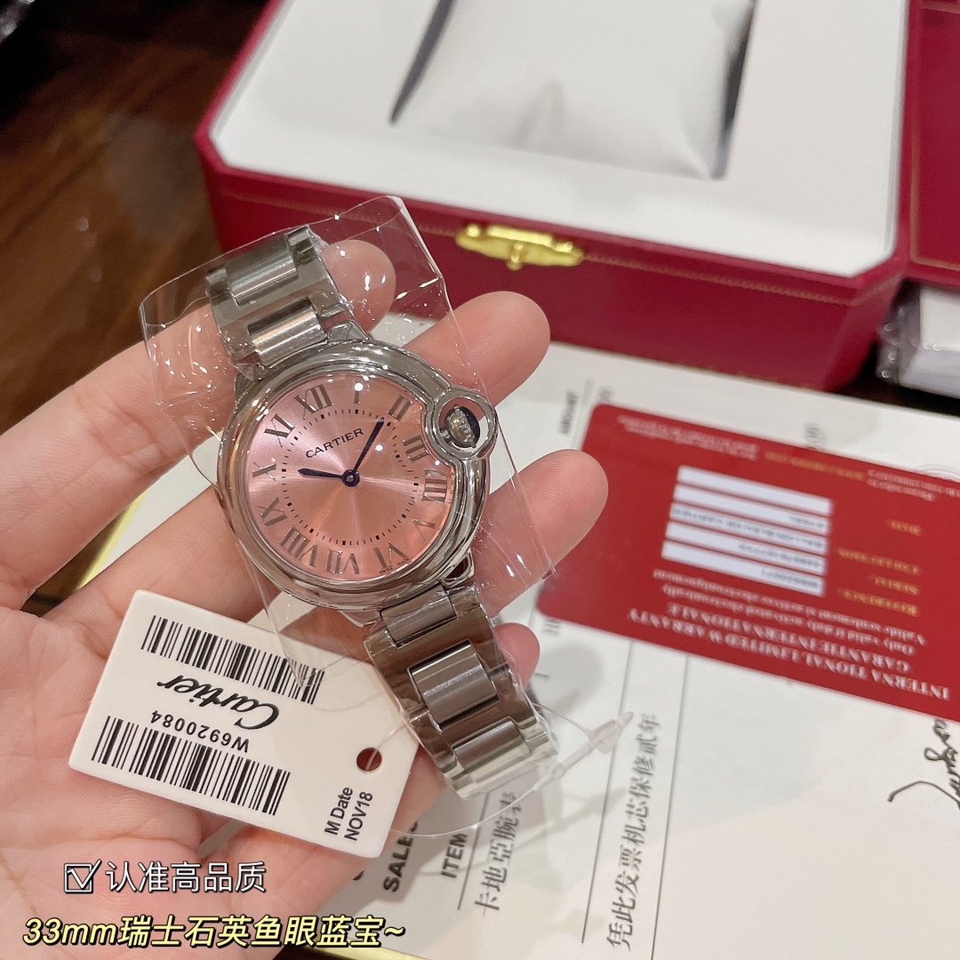【💰批380】🍀卡地亚蓝气球33mm台湾厂到货!精品专柜同步✨钢带版 瑞士石英机芯 鱼👀蓝宝石玻璃(裸粉 冰蓝 深灰面可选)极佳尺寸 精致小巧 气质经典款 请认准独家高品质!🍀🍀🍀