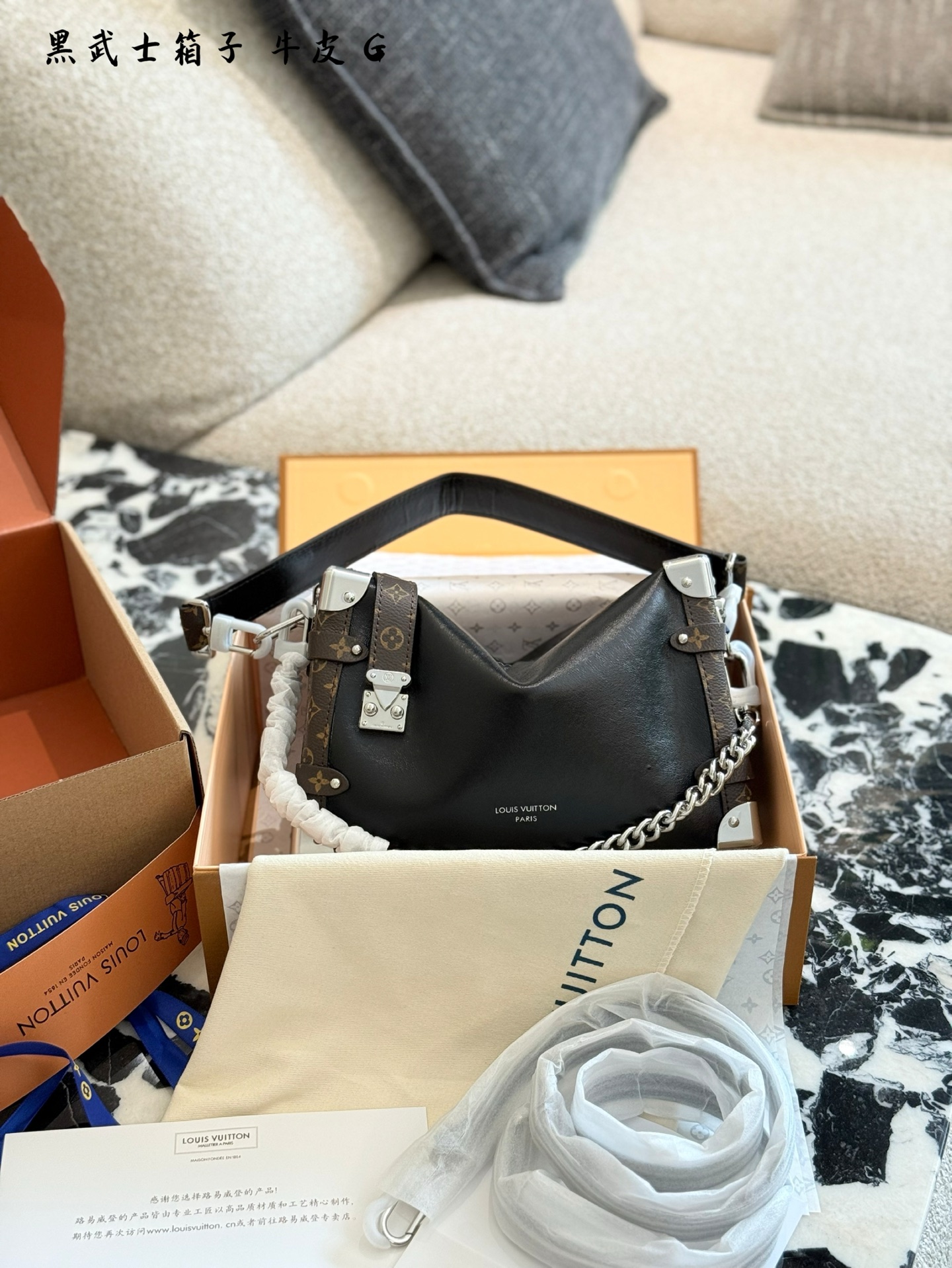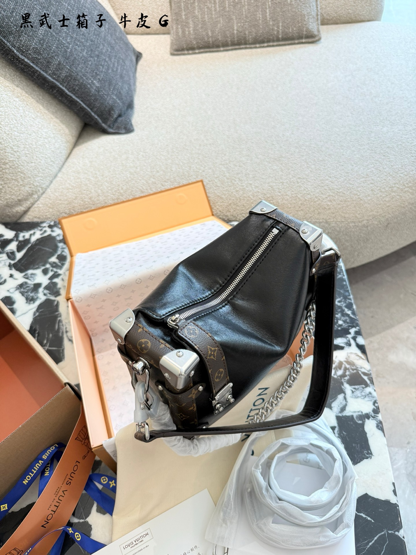💰280 LV新款 Side Trunk 纯皮包包 软盒子 纯色油蜡牛皮革材质 包身采用经典映箱等细节😍 自带手柄🉑️调节肩带均可拆卸 方便手拎 肩背 斜挎 包型格春夏更配哦24cm双盒