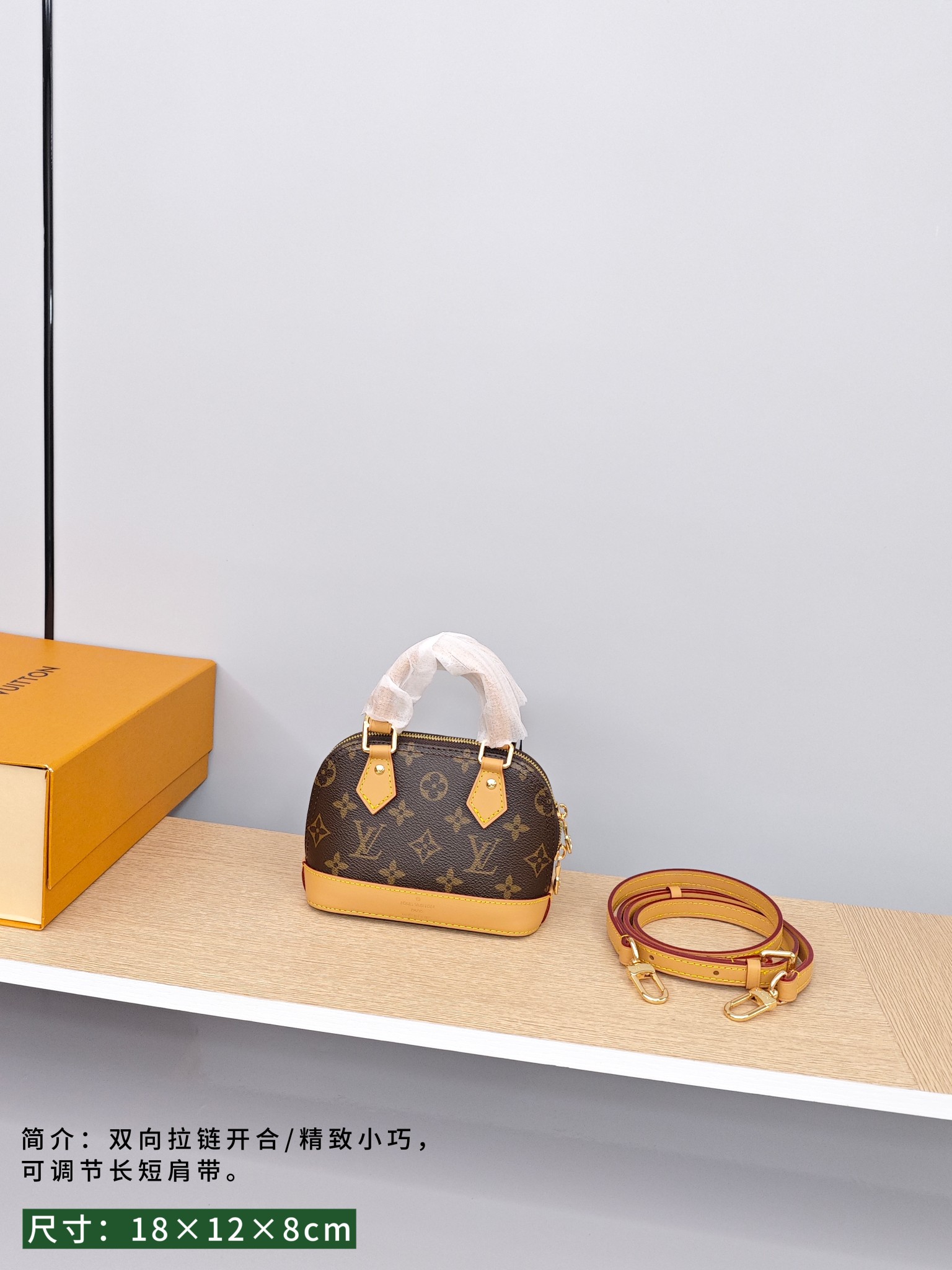 Lv nano迷你贝壳包💰240 尺寸:18×12×8cm 简介:双向式拉链开合,内部空间可放下手机/口红等小样物品,搭配可调节长肩带,可手拎/可斜挎背。